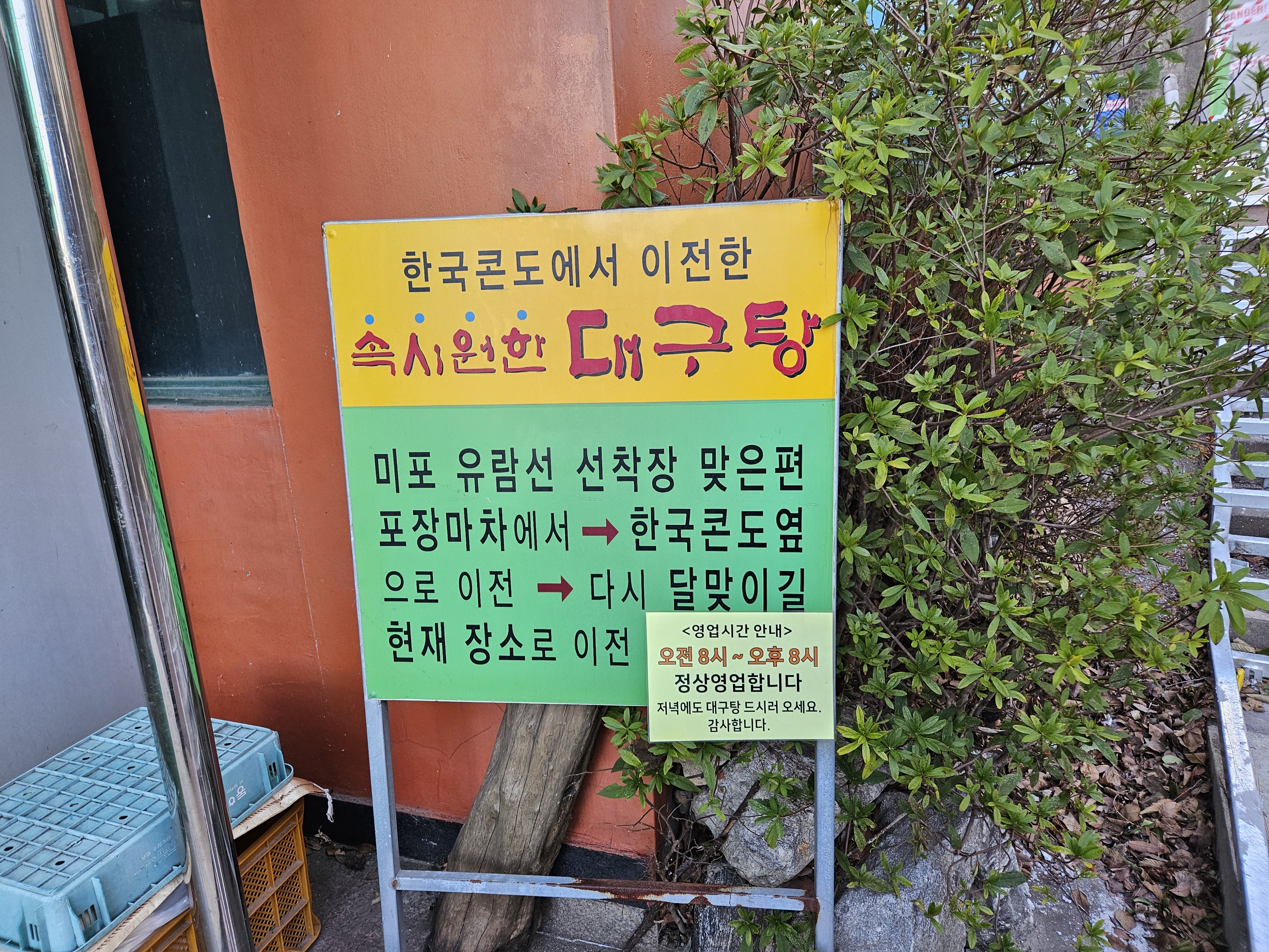 속시원한 대구탕은 원래 미포 유람선 선착장 맞은편에 있다가 한콘콘도 옆으로, 그리고 이후 달맞이길 현재 장소로 이전했습니다.