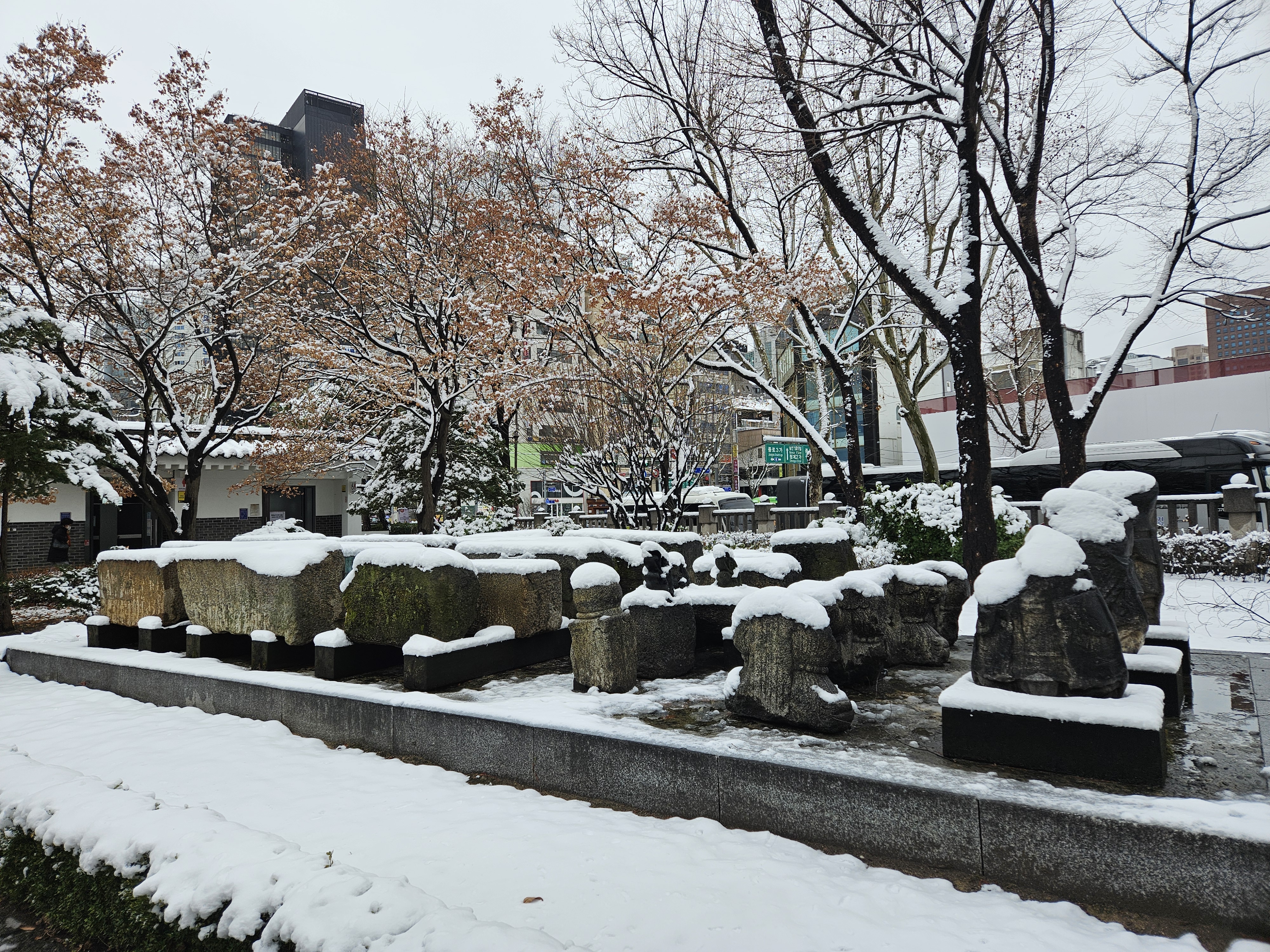 탑골공원 화단의 설경