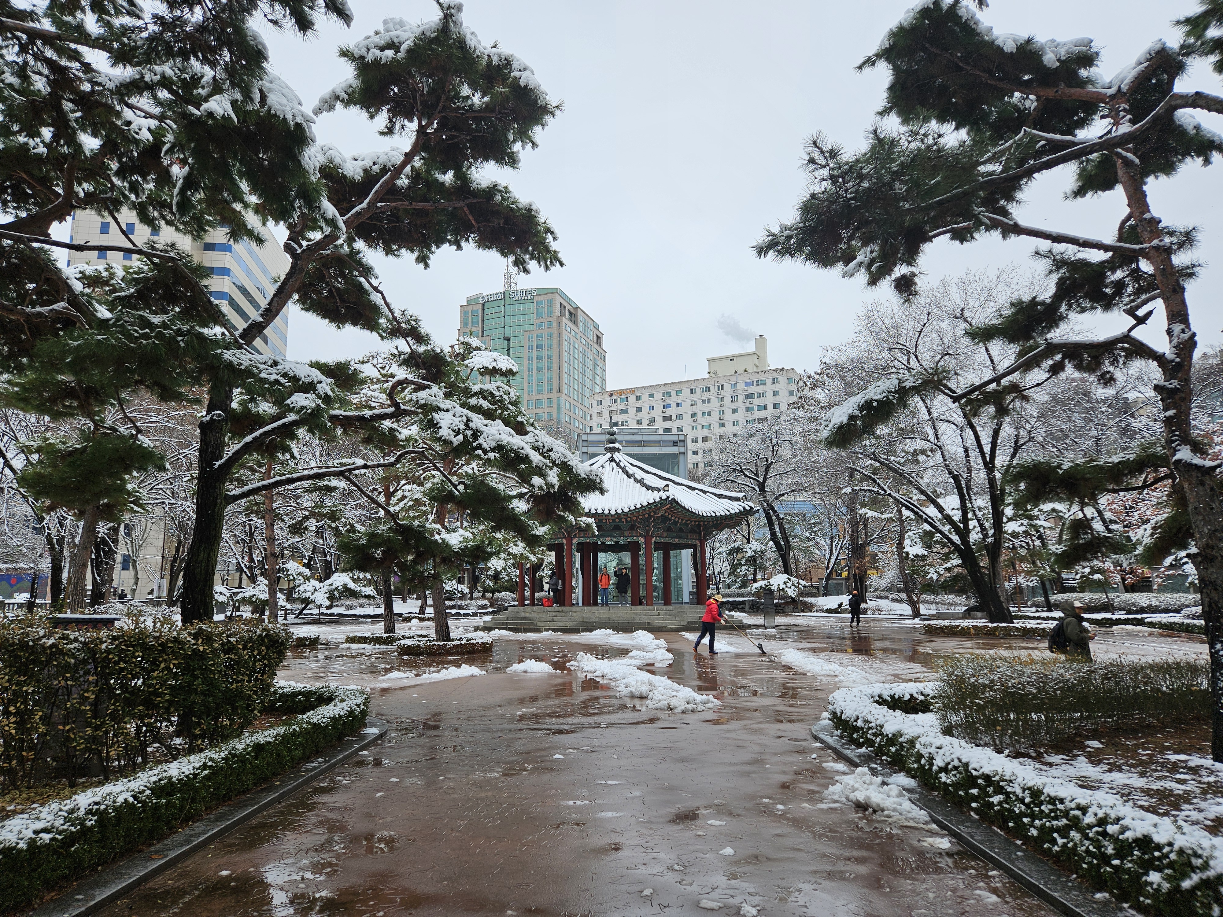 탑골공원 정원 설경