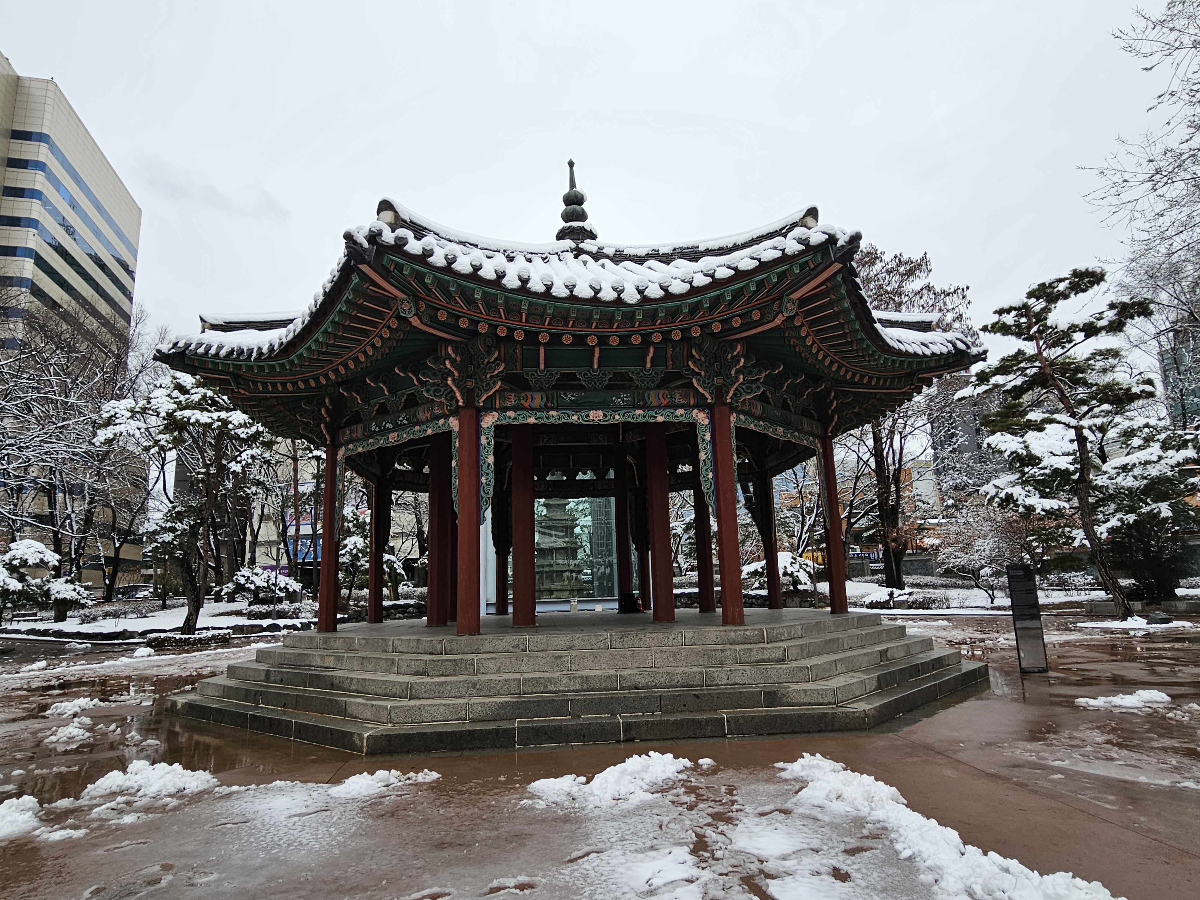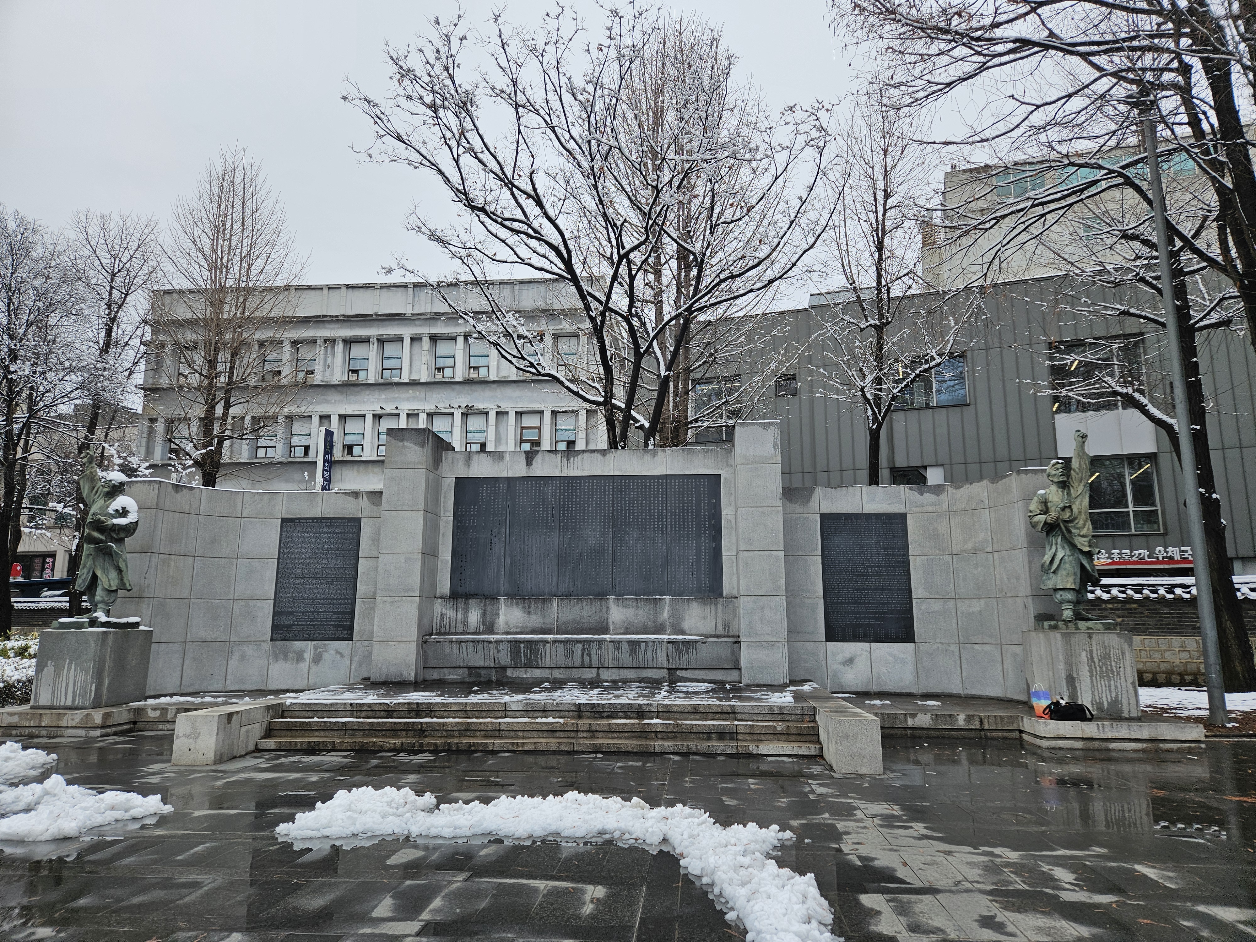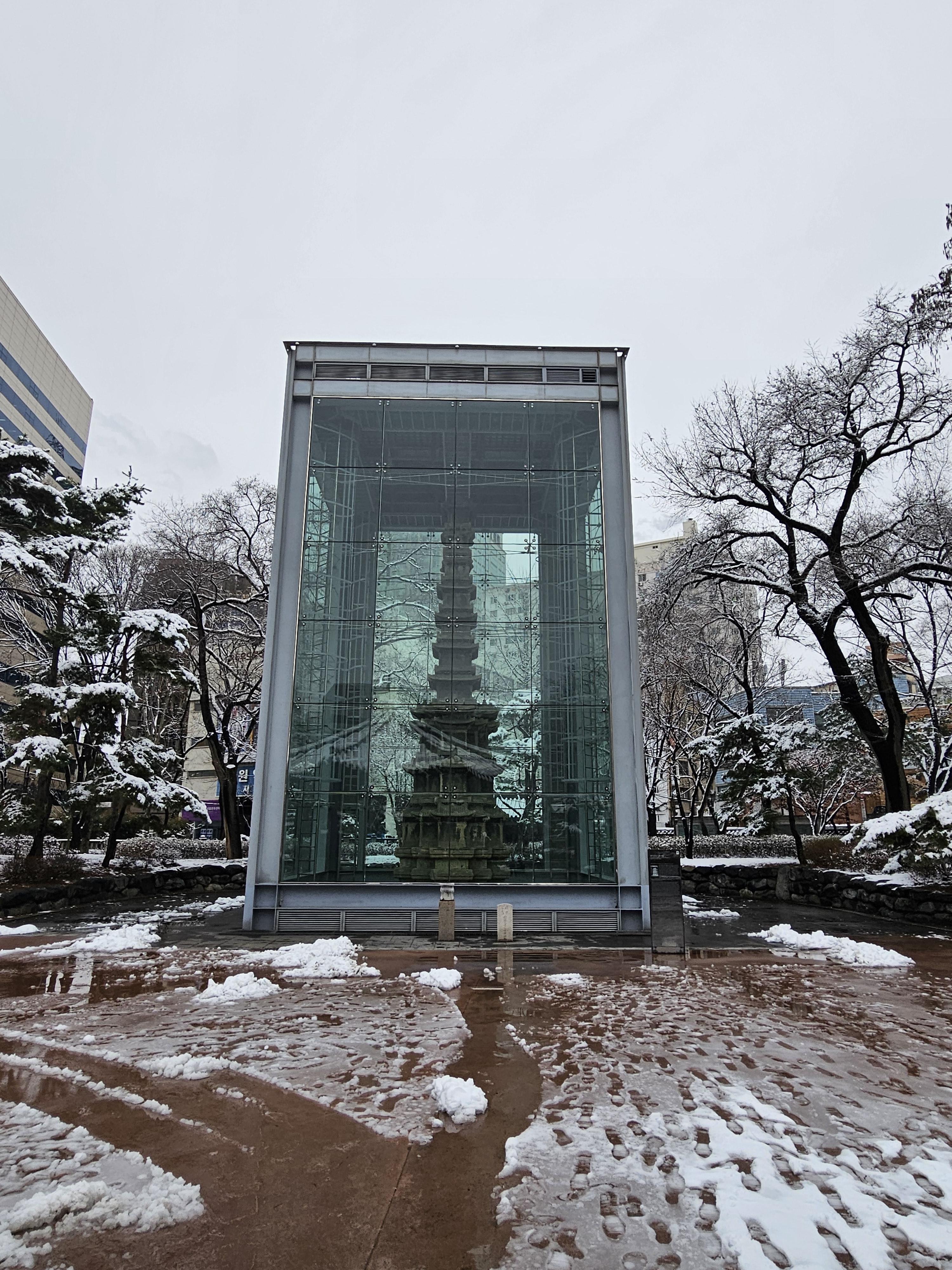 평소엔 어르신들이 점령하다시피 하는데 눈 내린 날이라 그런지 탑골공원은 한적했습니다.