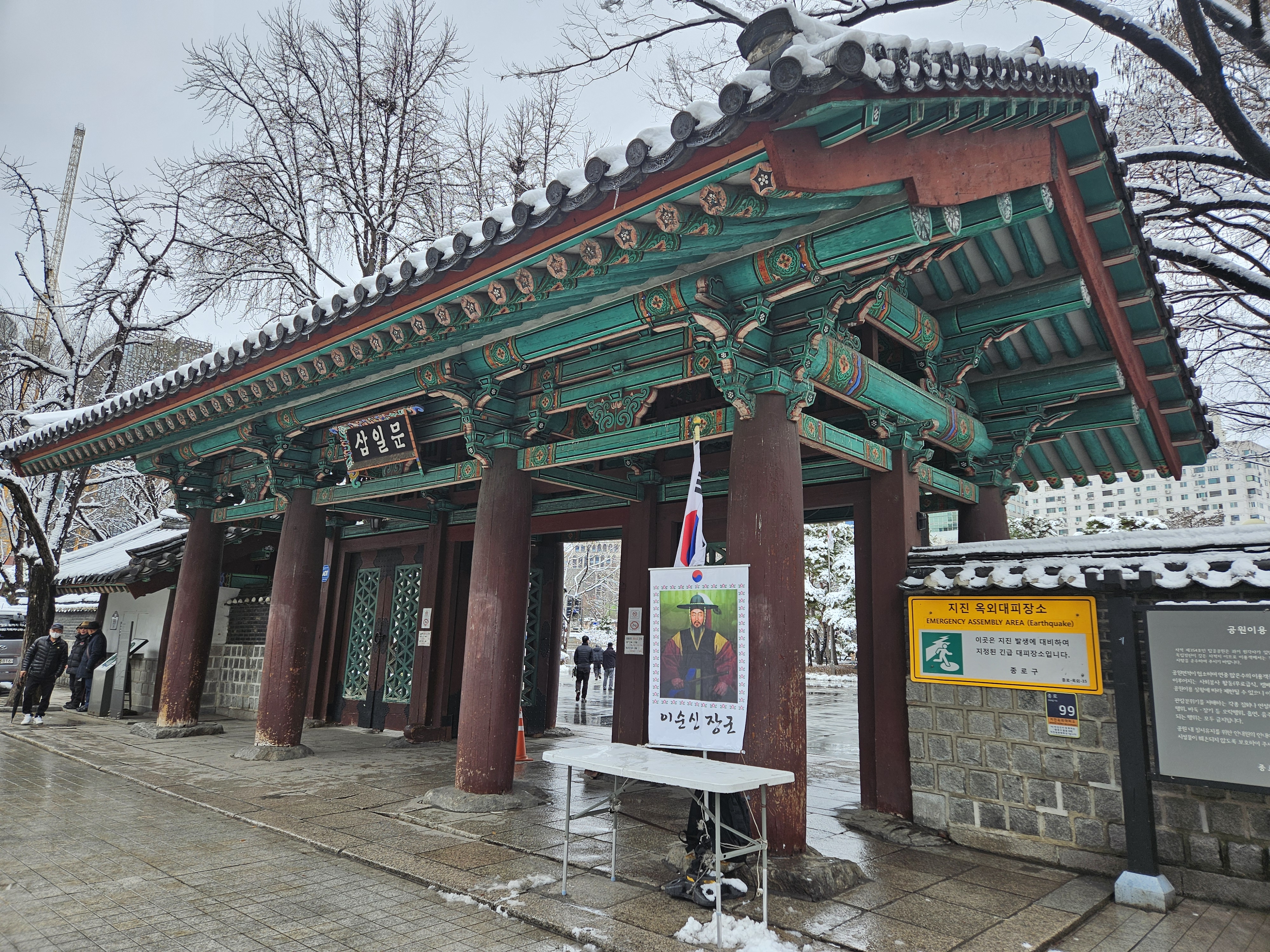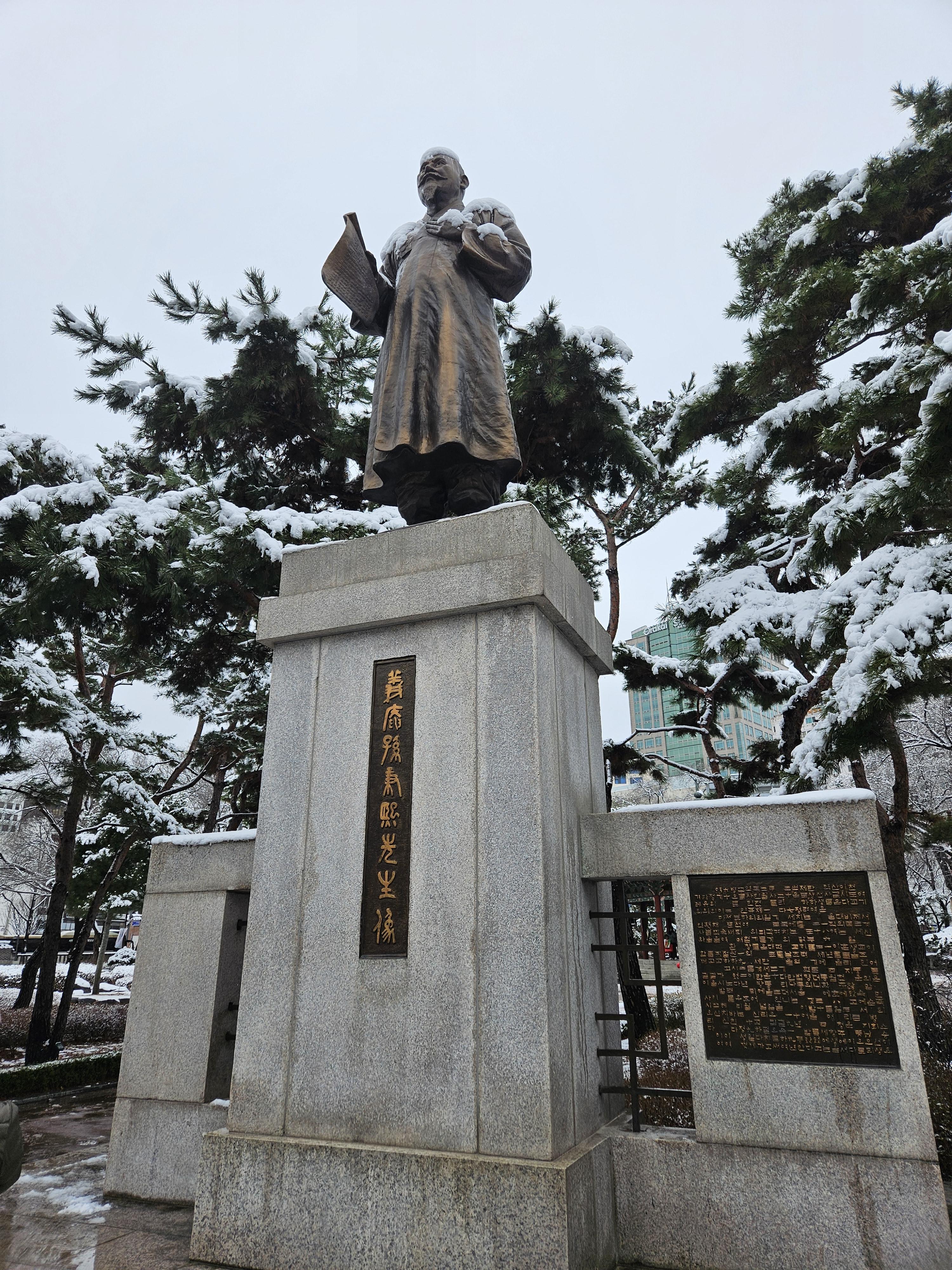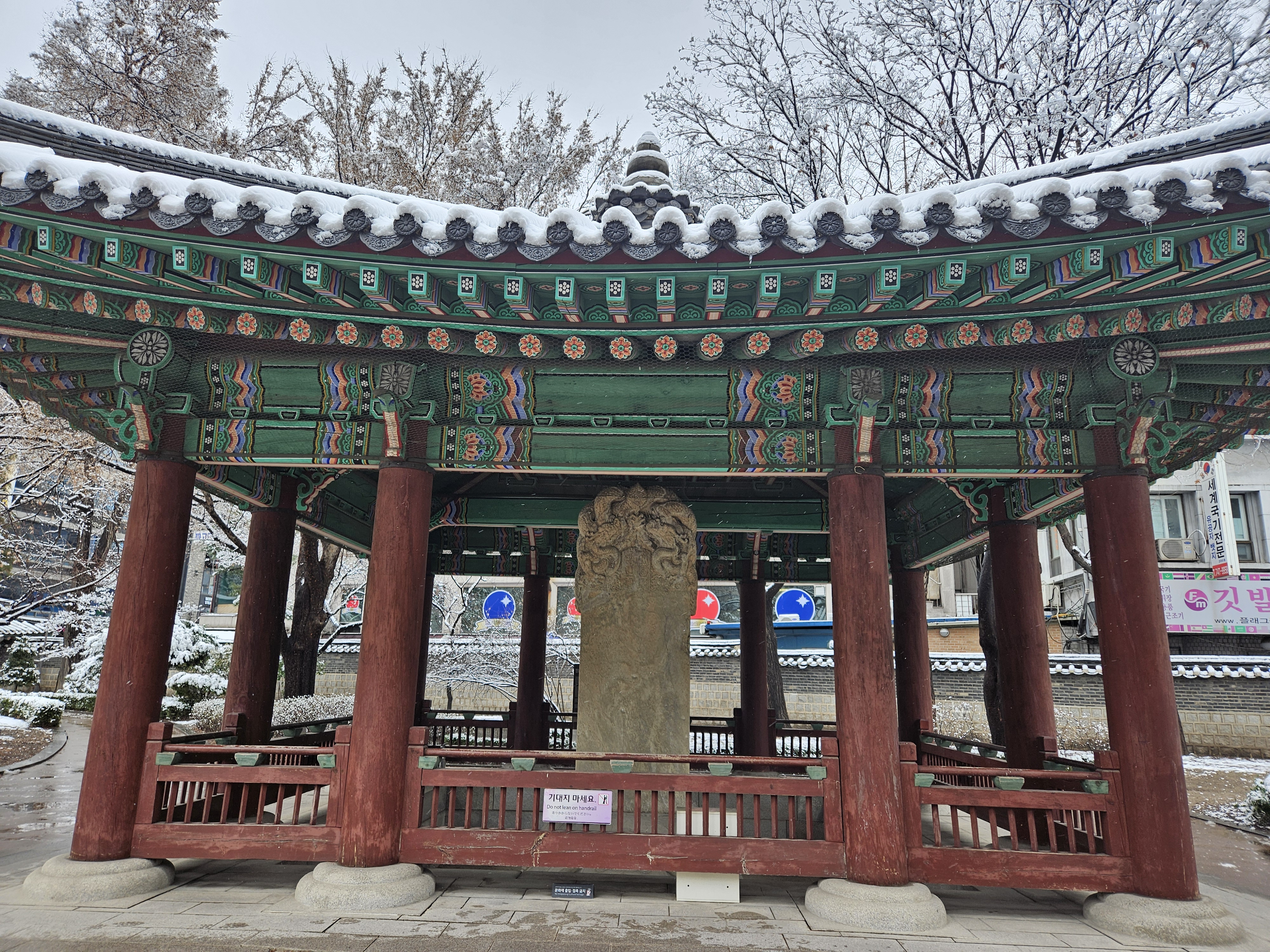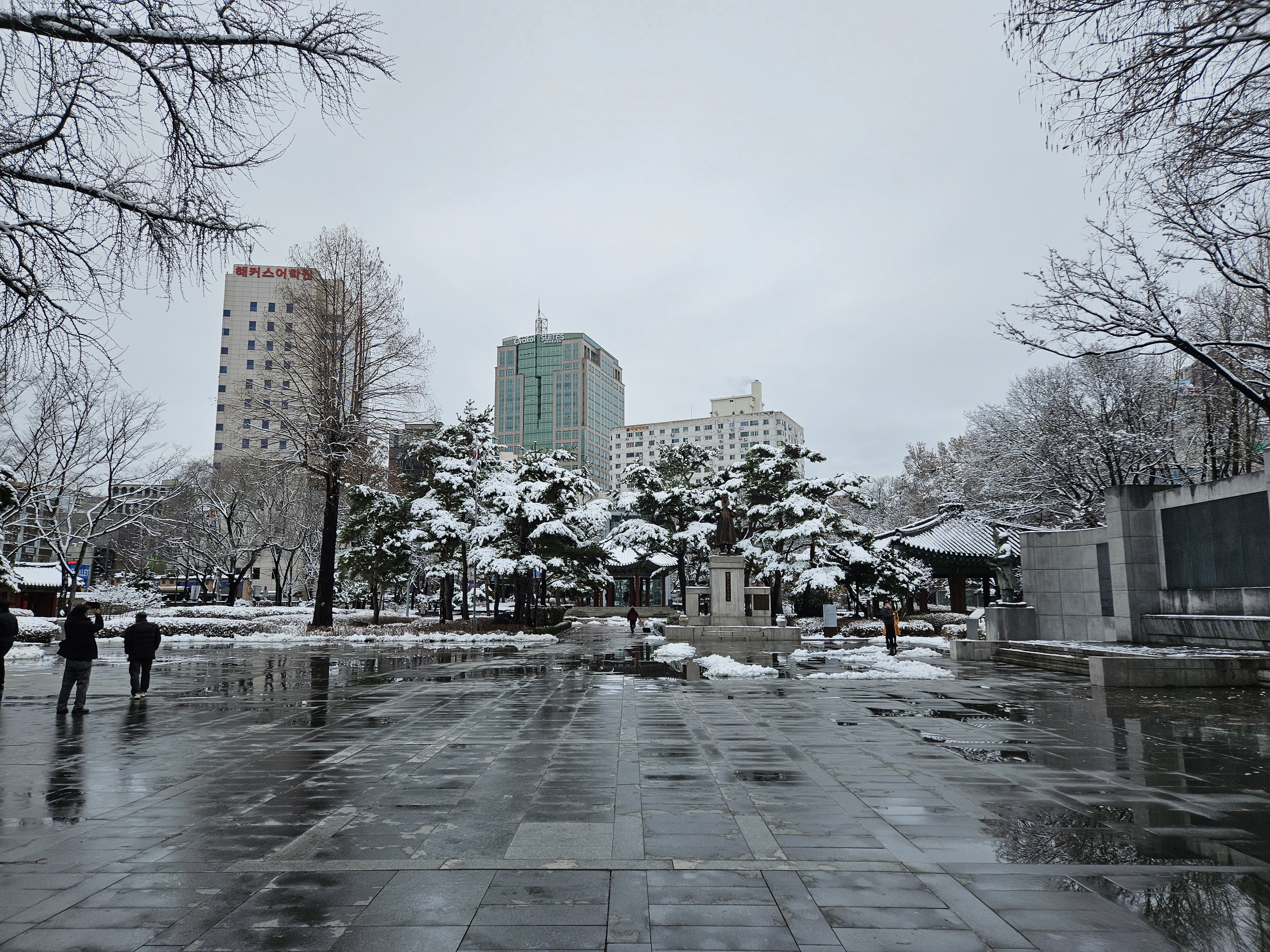 평소엔 어르신들이 점령하다시피 하는데 눈 내린 날이라 그런지 탑골공원은 한적했습니다.
