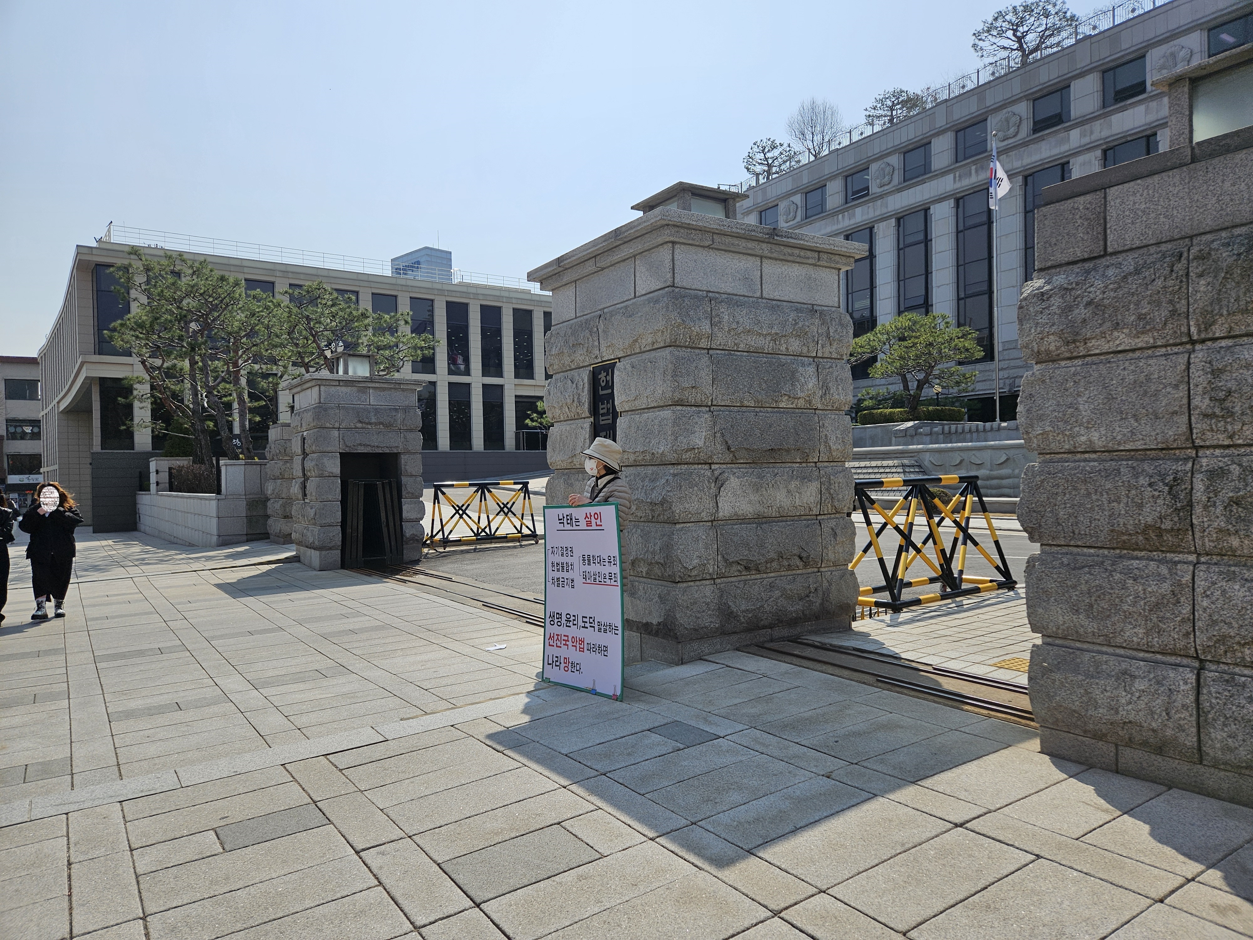 헌법재판소 정문에서 낙태금지 1인 시위를 하고 있습니다.