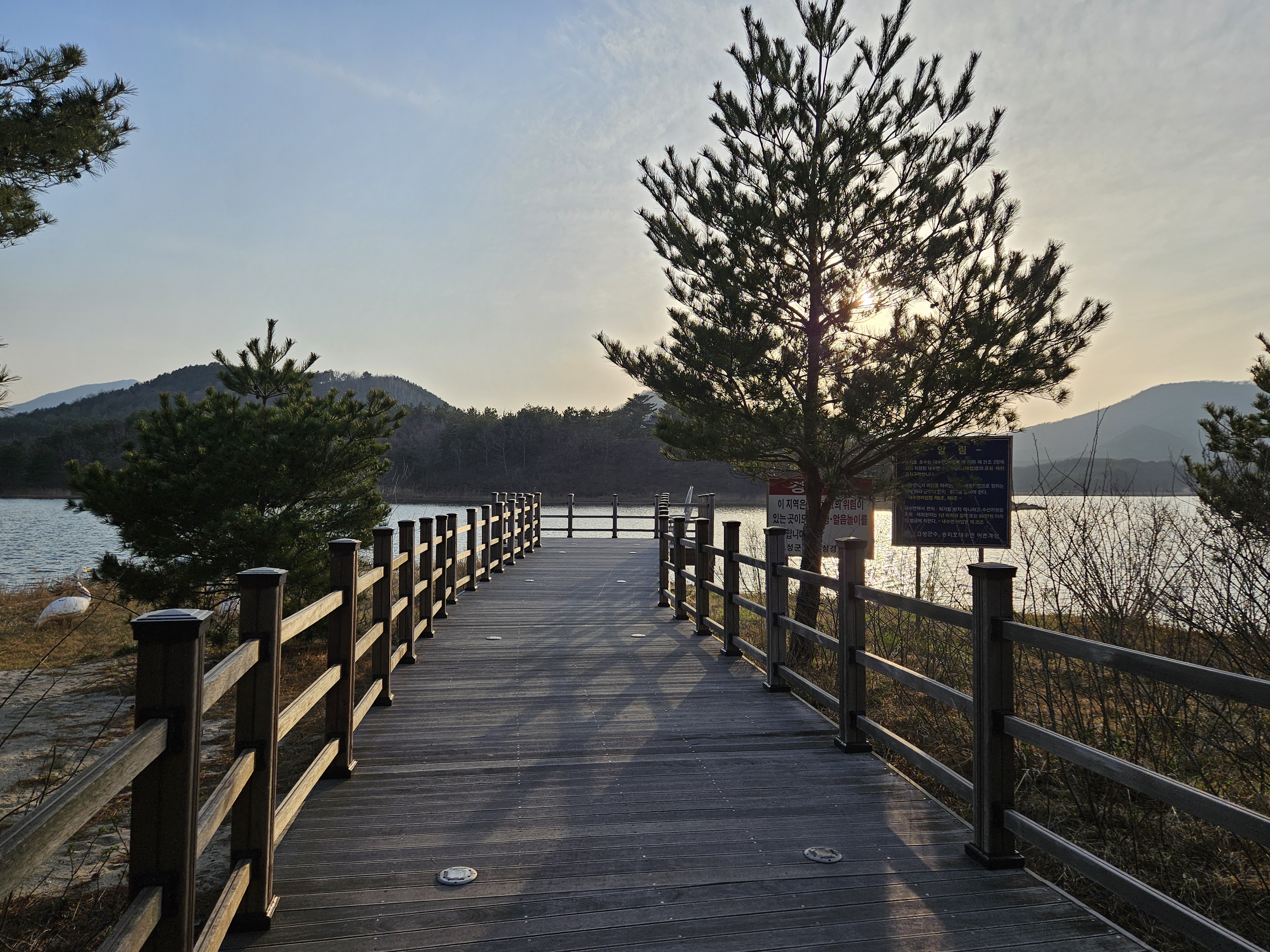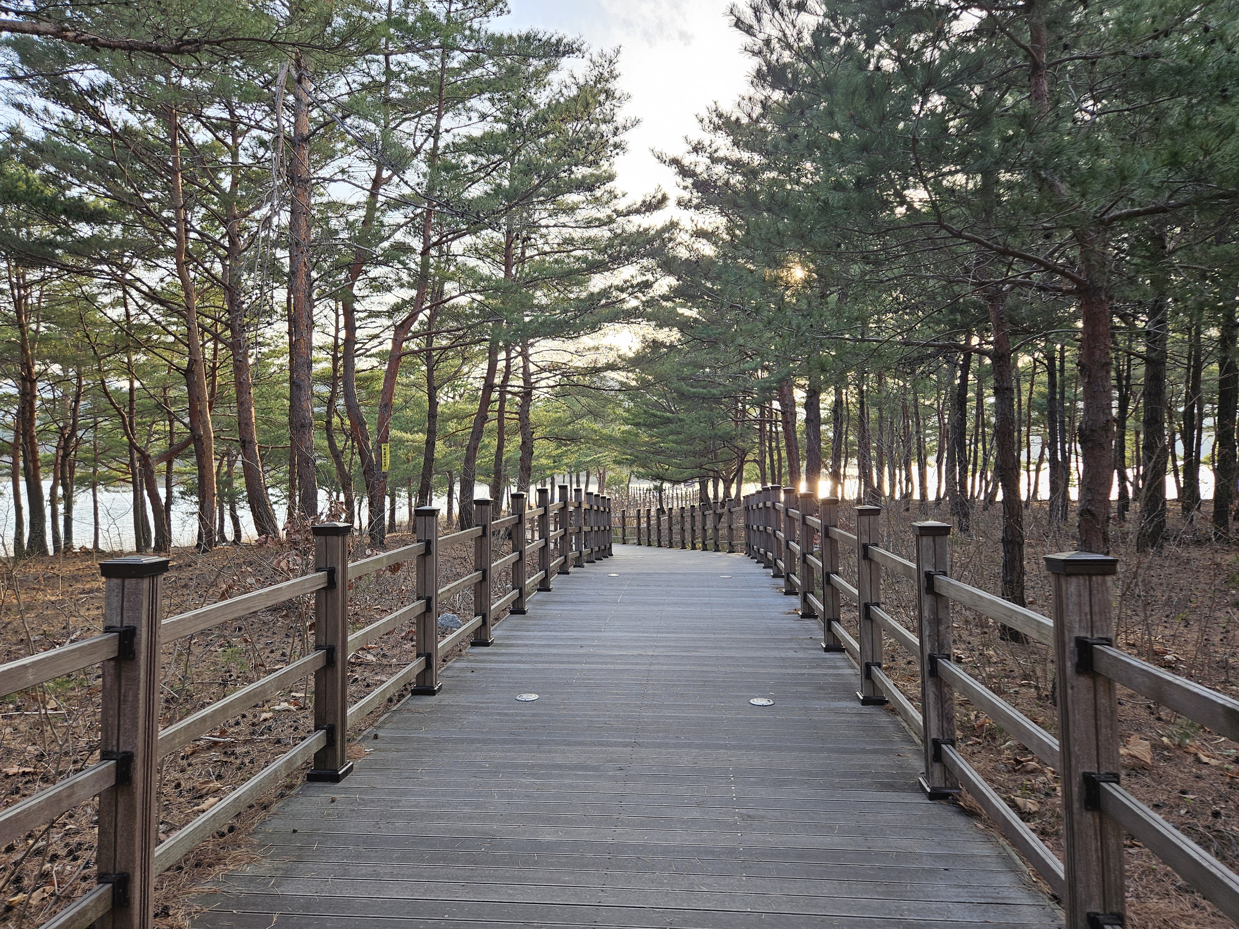 송지호 동쪽 무장애나눔길을 따라 걸을 수 있는데 거리는 1.5km로 20분 정도 소요됩니다.