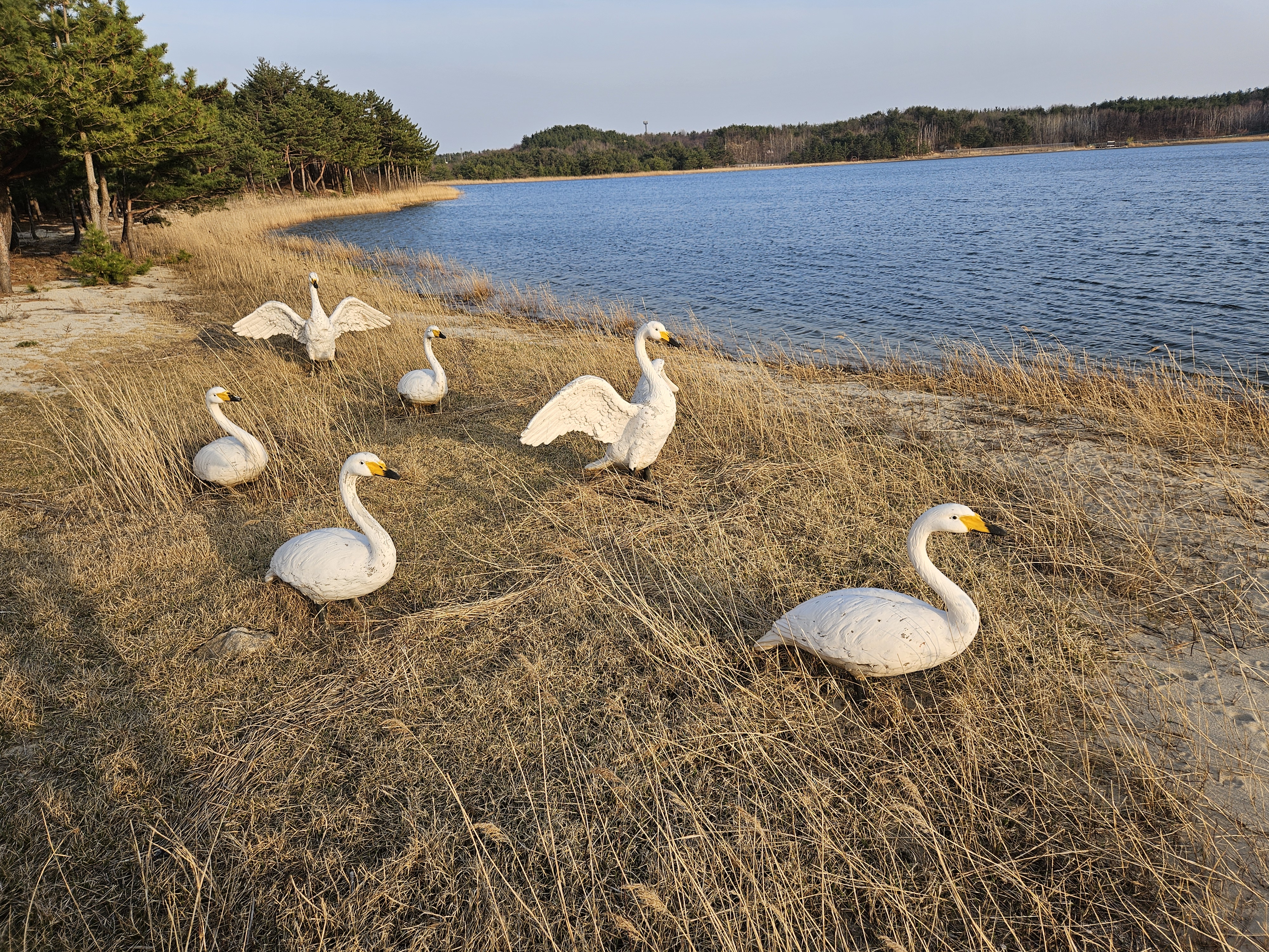 고성 송지호는 작은 만 입구에 모래가 쌓여 사주가 발달하면서 바다로부터 분리되어 형성된 석호로 둘레가 4km에 이릅니다.