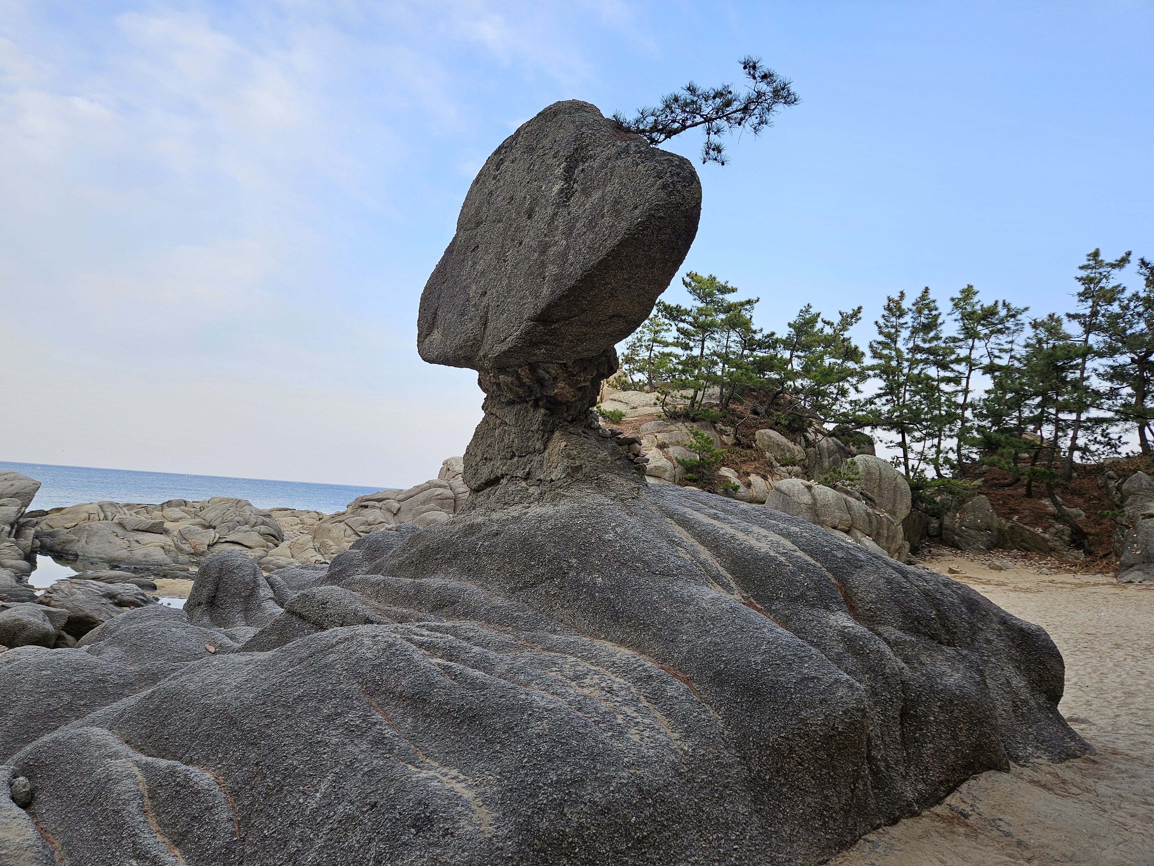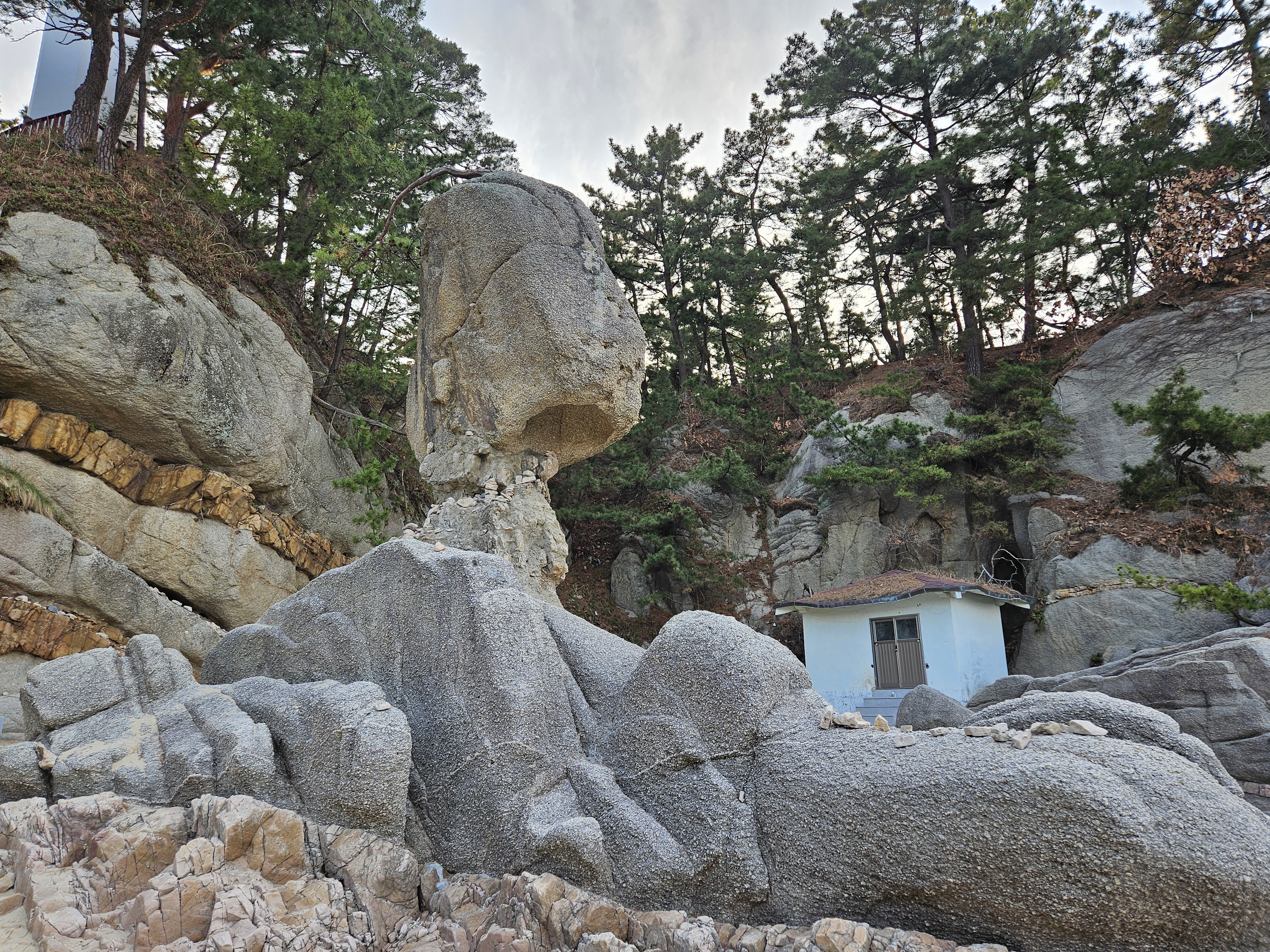부채바위는 대만 예류지질공원에 있는 여왕바위가 연상되기도 하고, 화강암 절리를 따라 용이 승천하는 듯한 모습을 하고 있습니다.