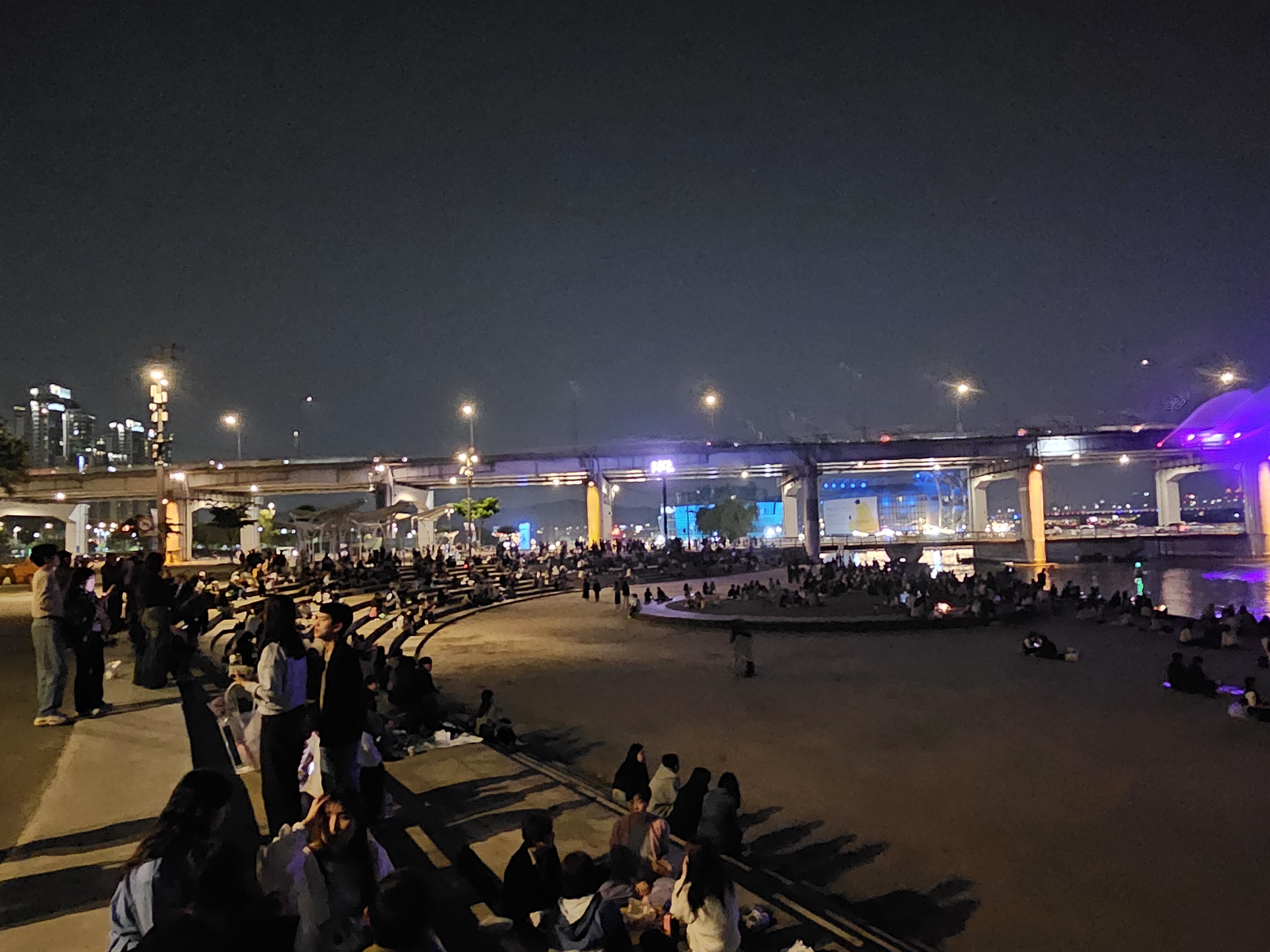 반포대교 달빛무지개분수를 즐기기에 가장 좋은 곳은 역시 잠수교 남단 반포한강공원 수상무대가 있는 곳입니다.