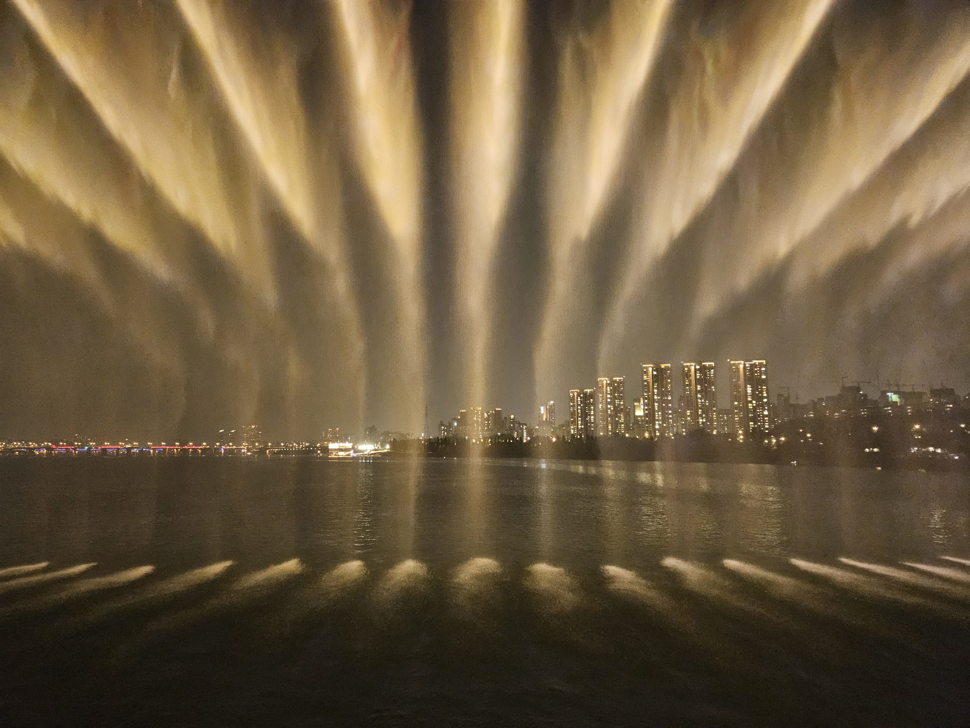 형형색색 조명이 힘차게 쏟아붓는 물줄기에 아름다운 한강의 밤을 연출하고 있습니다.
