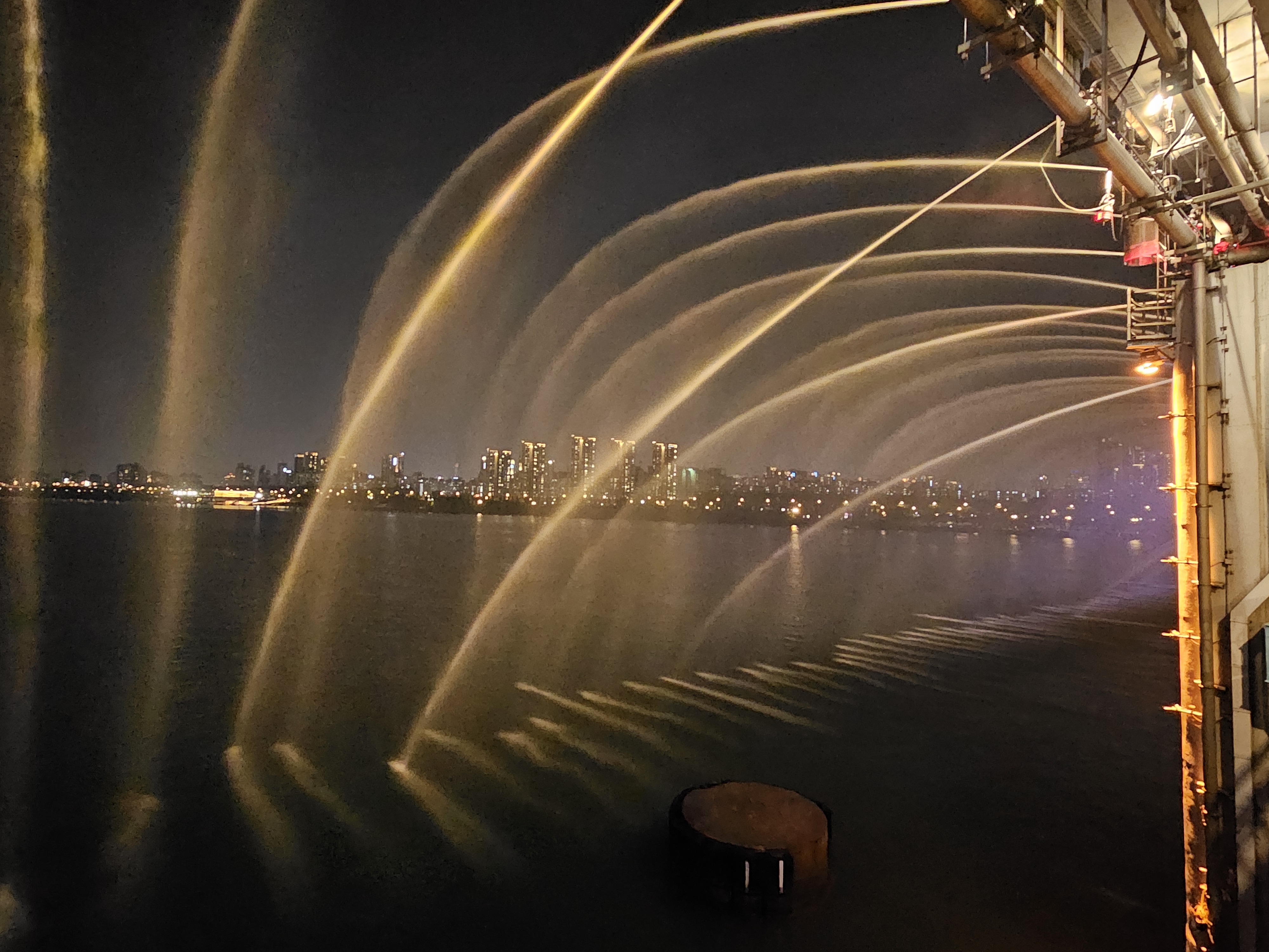 한강으로 떨어지는 시원한 분수를 리얼하게 바라볼 수 있습니다.