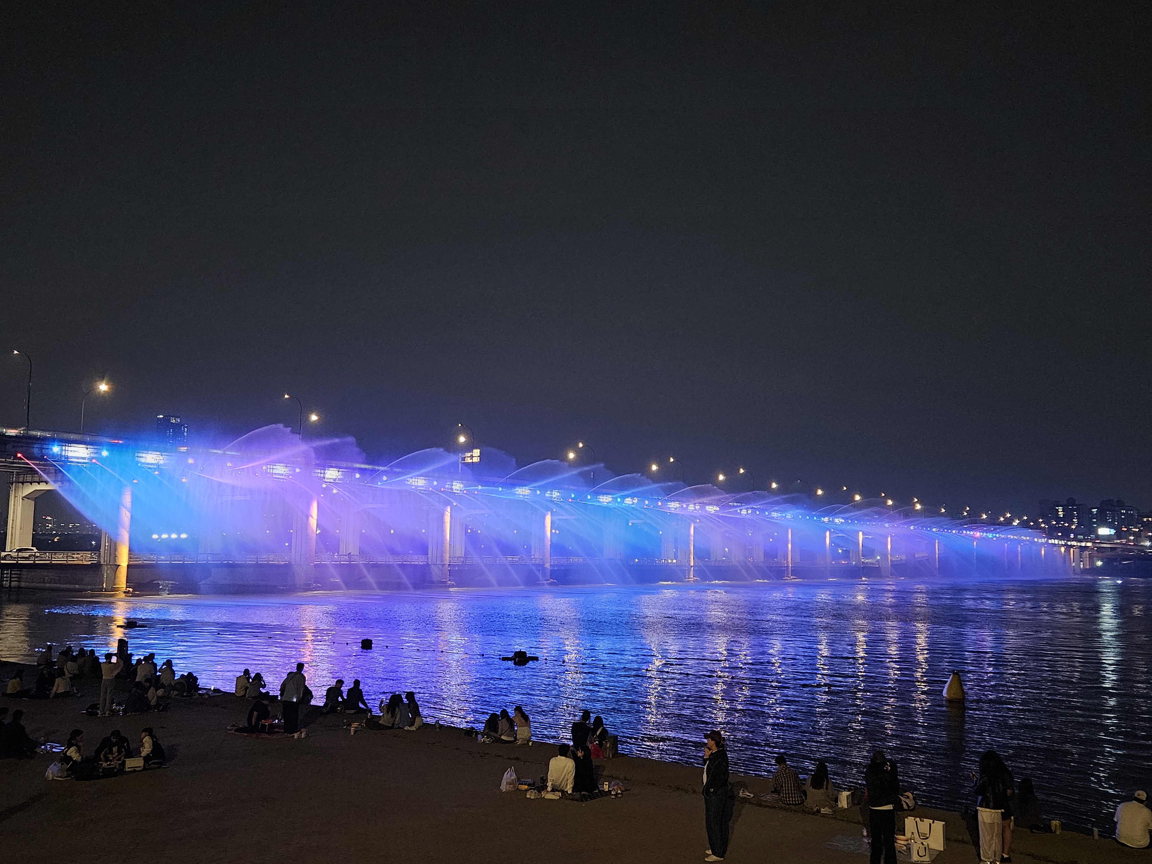 포근해진 밤공기를 즐기며 많은 시민들이 찾고 있는 반포대교 달빛 무지개분수를 구경해 보세요.