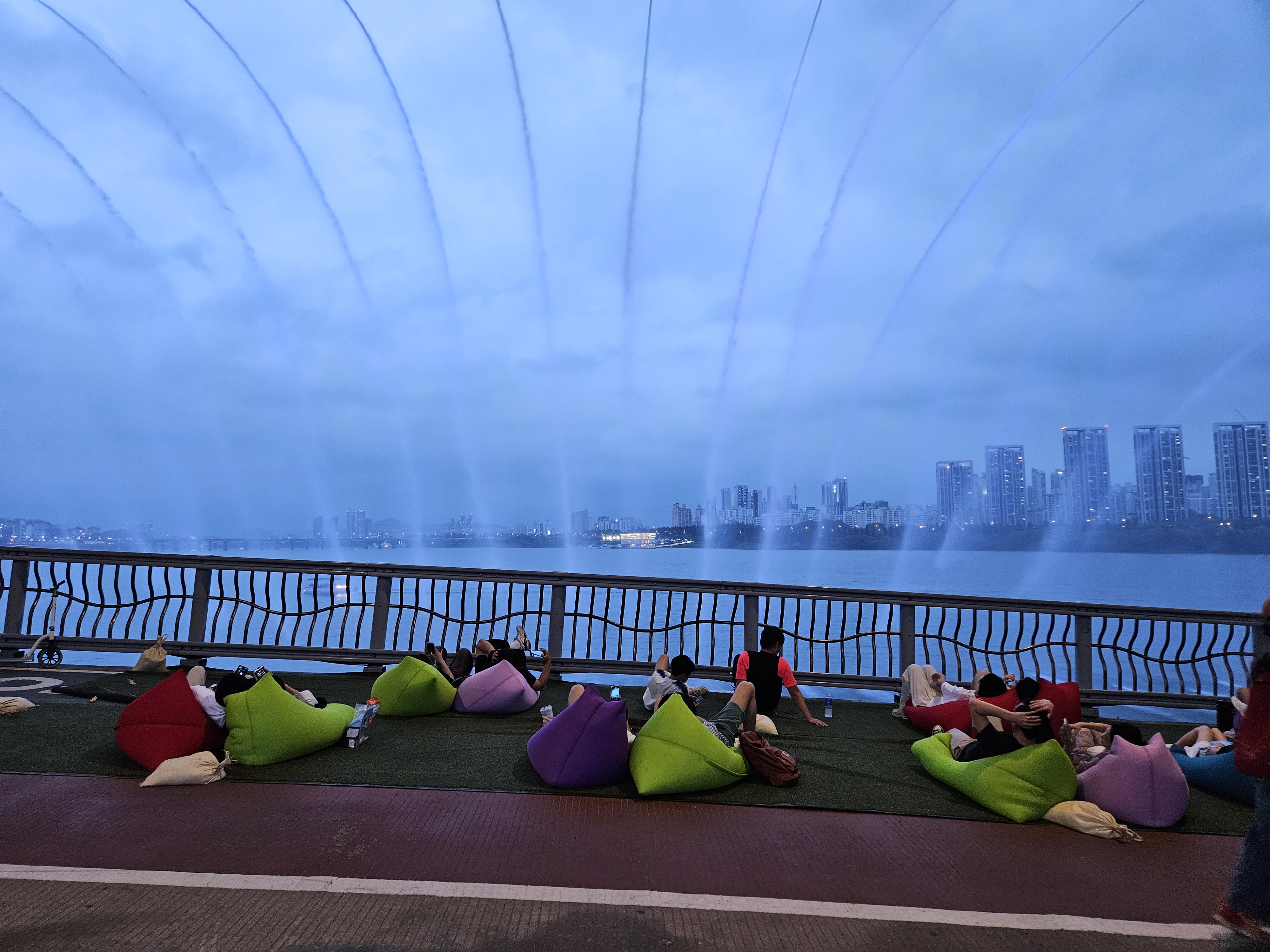 빈백(푹신한 의자)에 누워 석양과 반포대교 달빛무지개분수를 관람할 수 있는 칠링힐링존.
