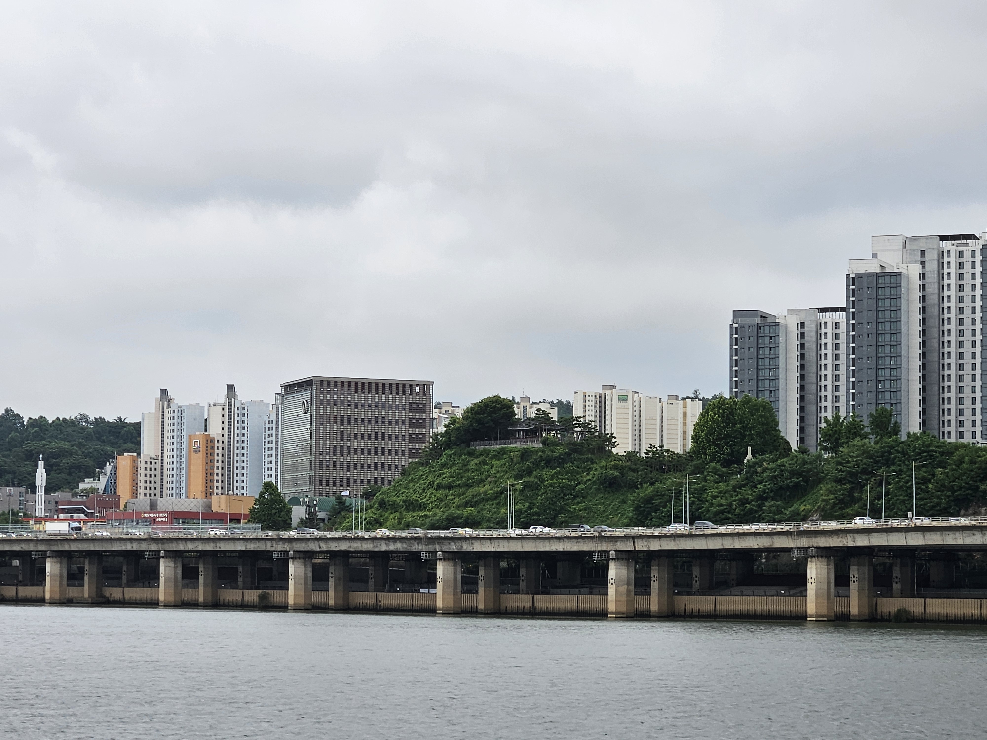 원불교 한강교당과 그 옆에 봉긋 올라온 봉우리는 효사정이라고 하는 공원입니다.