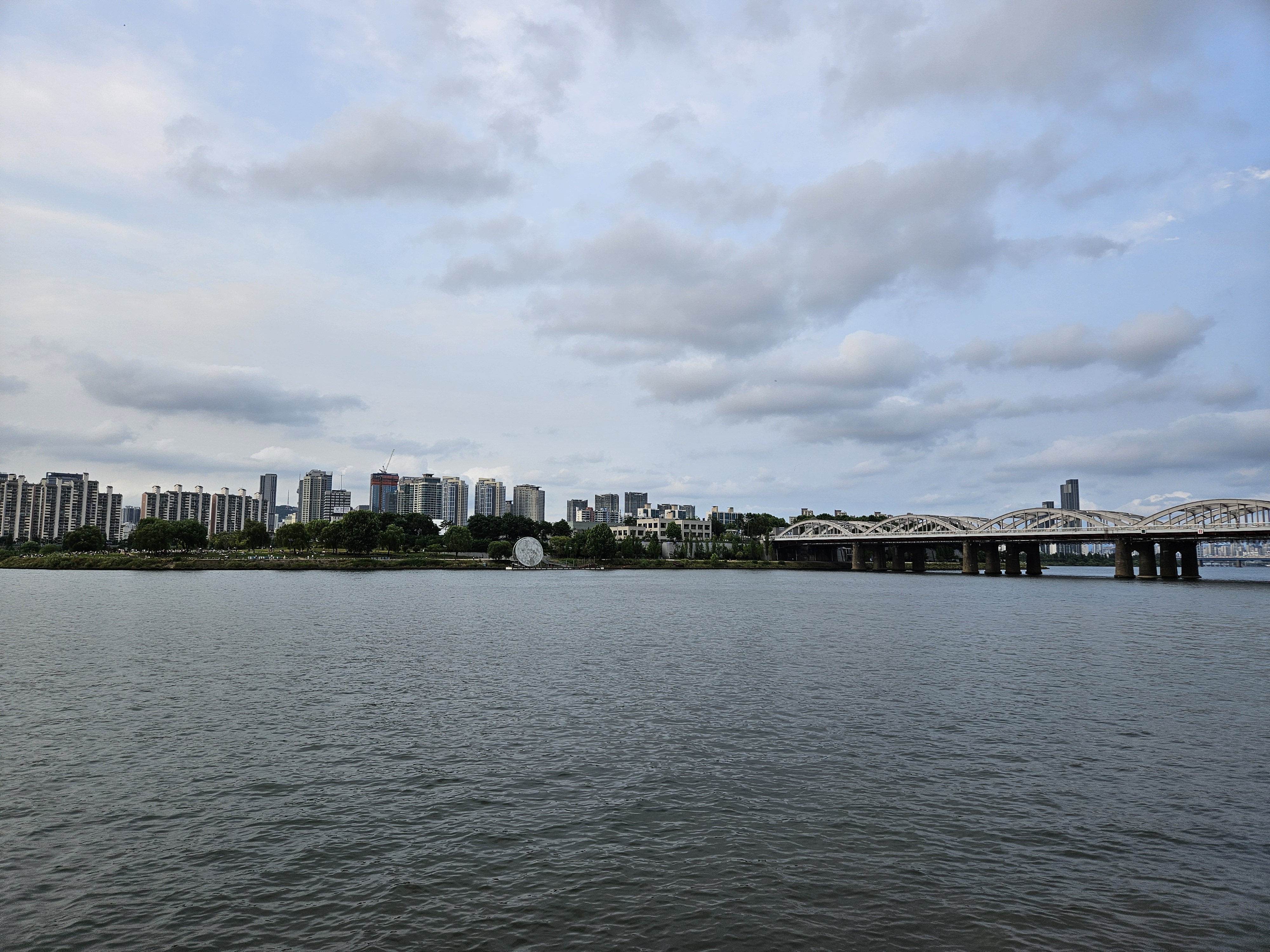 동작대교 아래쪽으로 반포한강공원 앞 세빛섬이 눈에 들어옵니다.