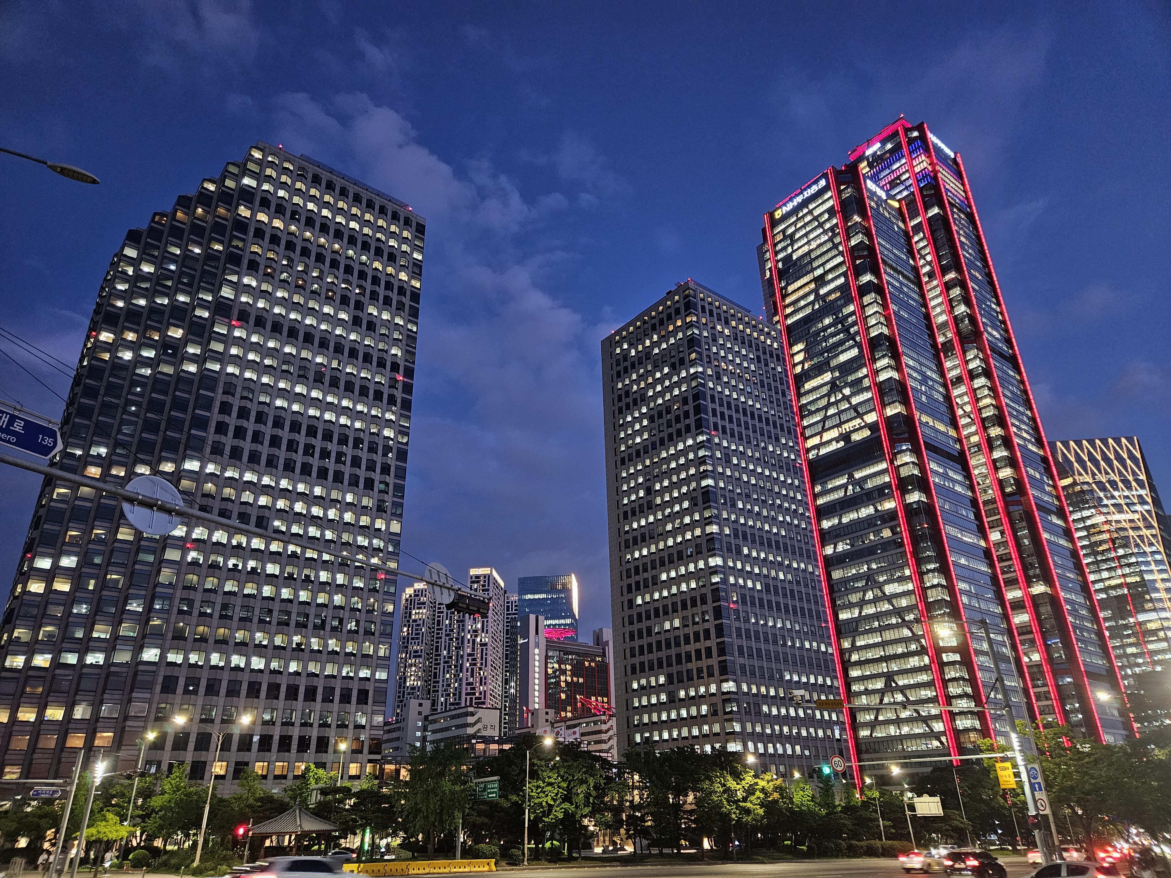 파크원타워의 이 붉은색 기둥은 여의도의 랜드마크가 되었고, 먼 곳에서도 단연 돋보이는 건물이 되었습니다.