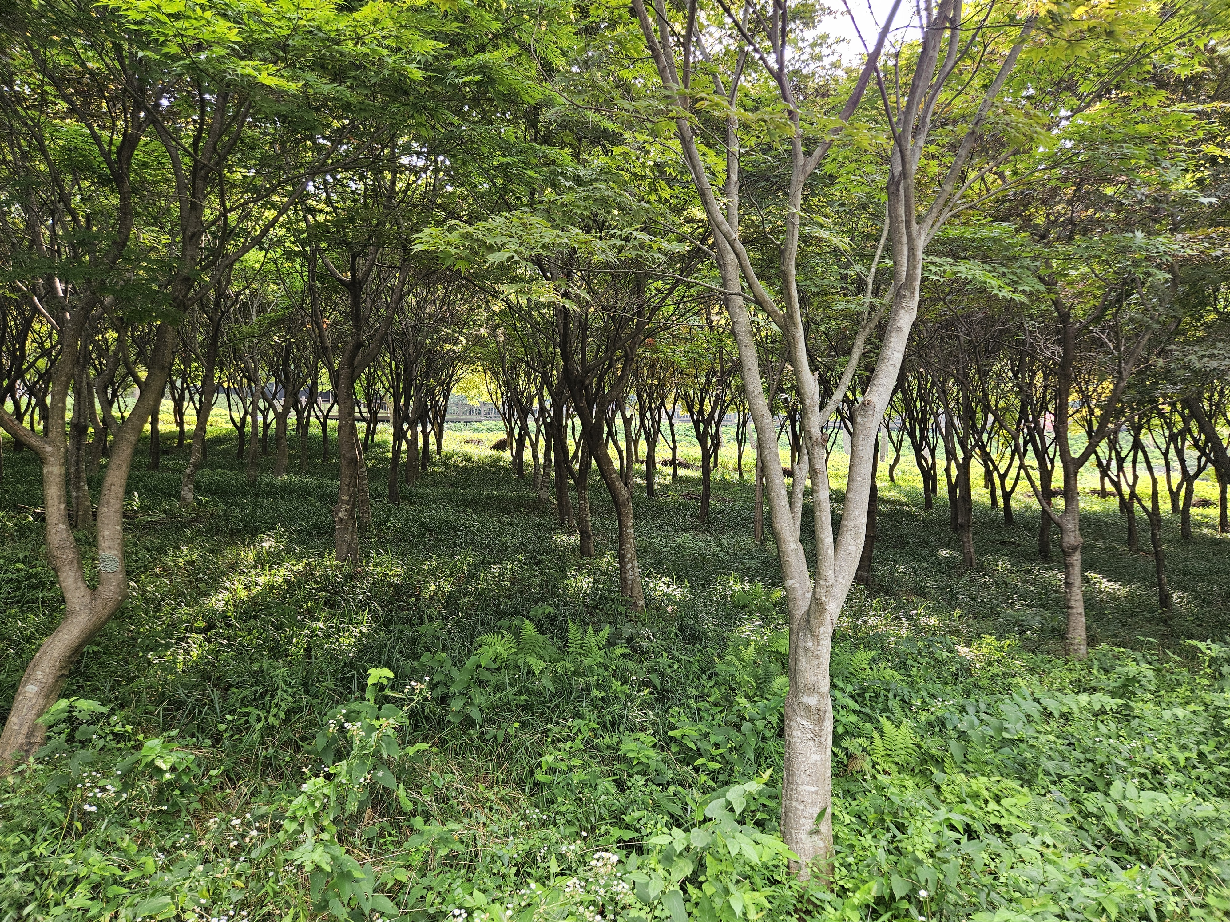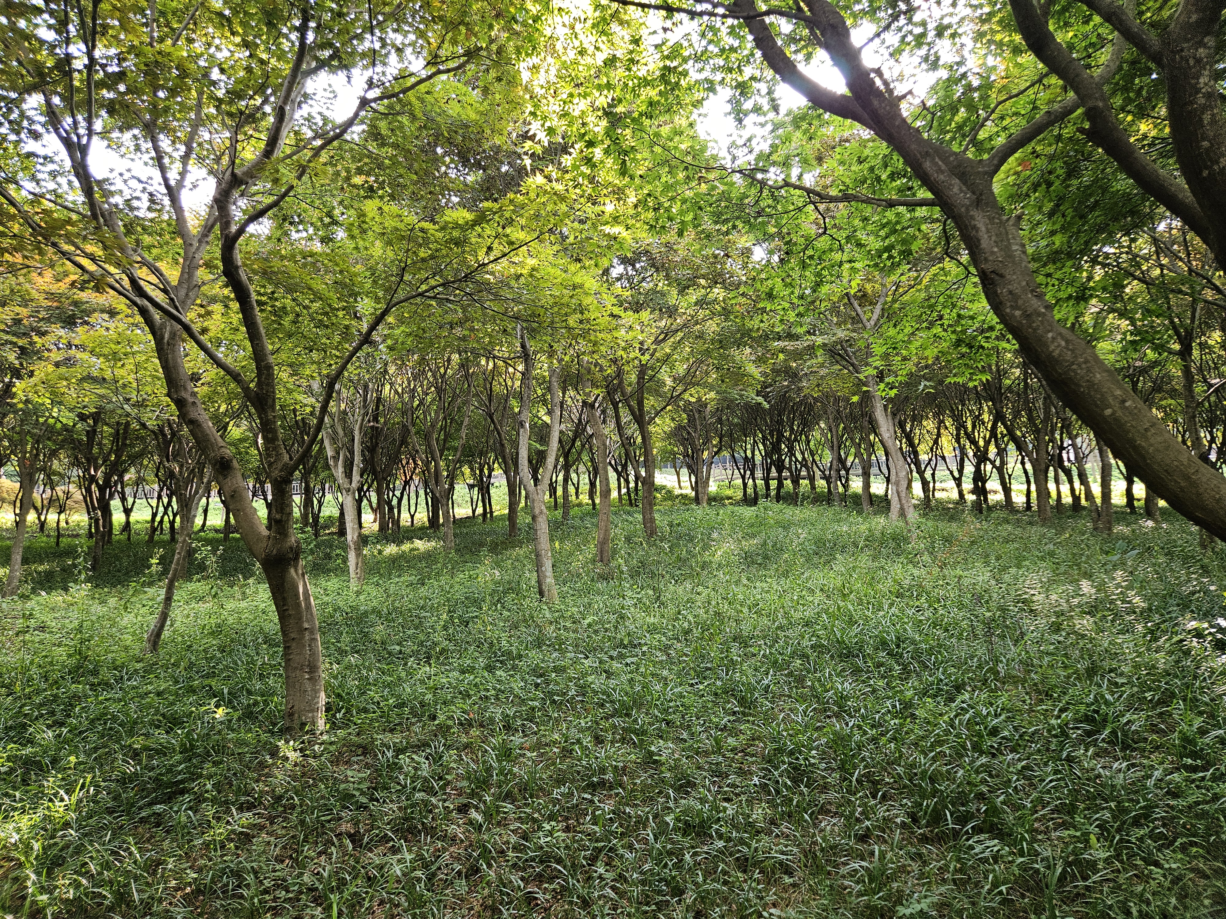 반대방향 북쪽(아래)으로 이동하면 수만리생태숲공원이 시작되고, 그 지점엔 단풍나무숲이 나옵니다.