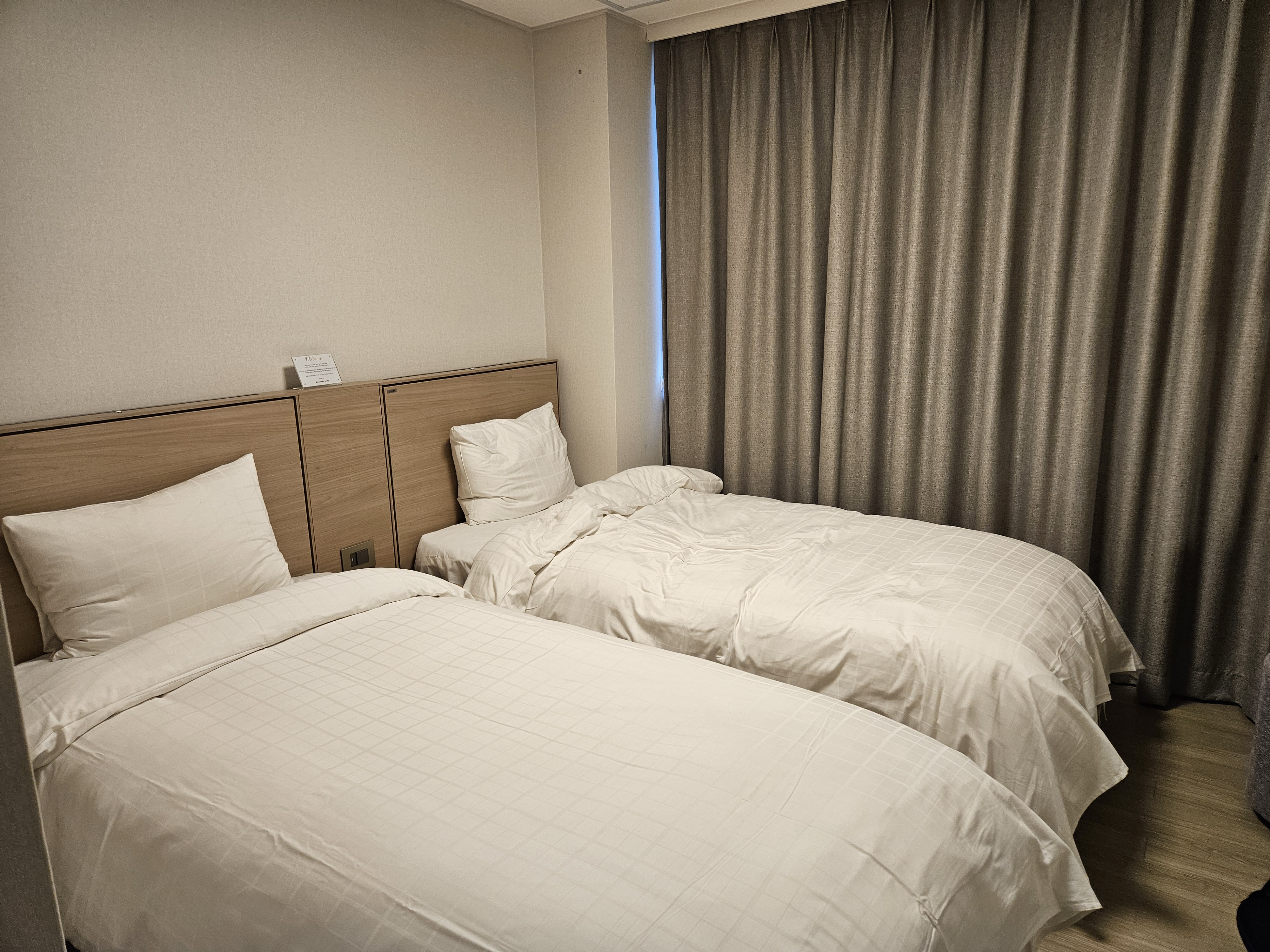 침실엔 싱글침대 2개가 있습니다.