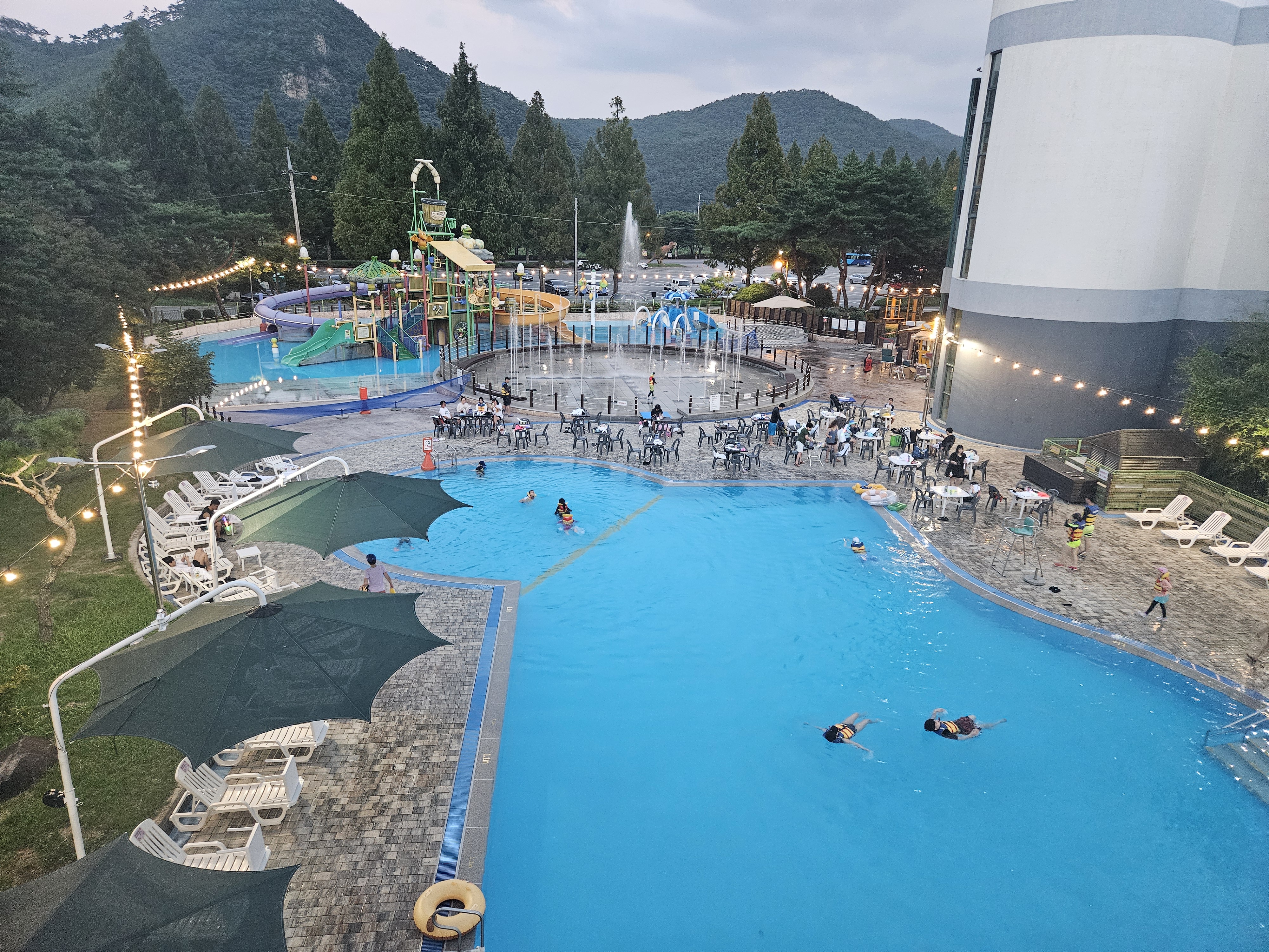 화순 아쿠아나 실외 워터파크 모습이 한눈에 들어옵니다.
