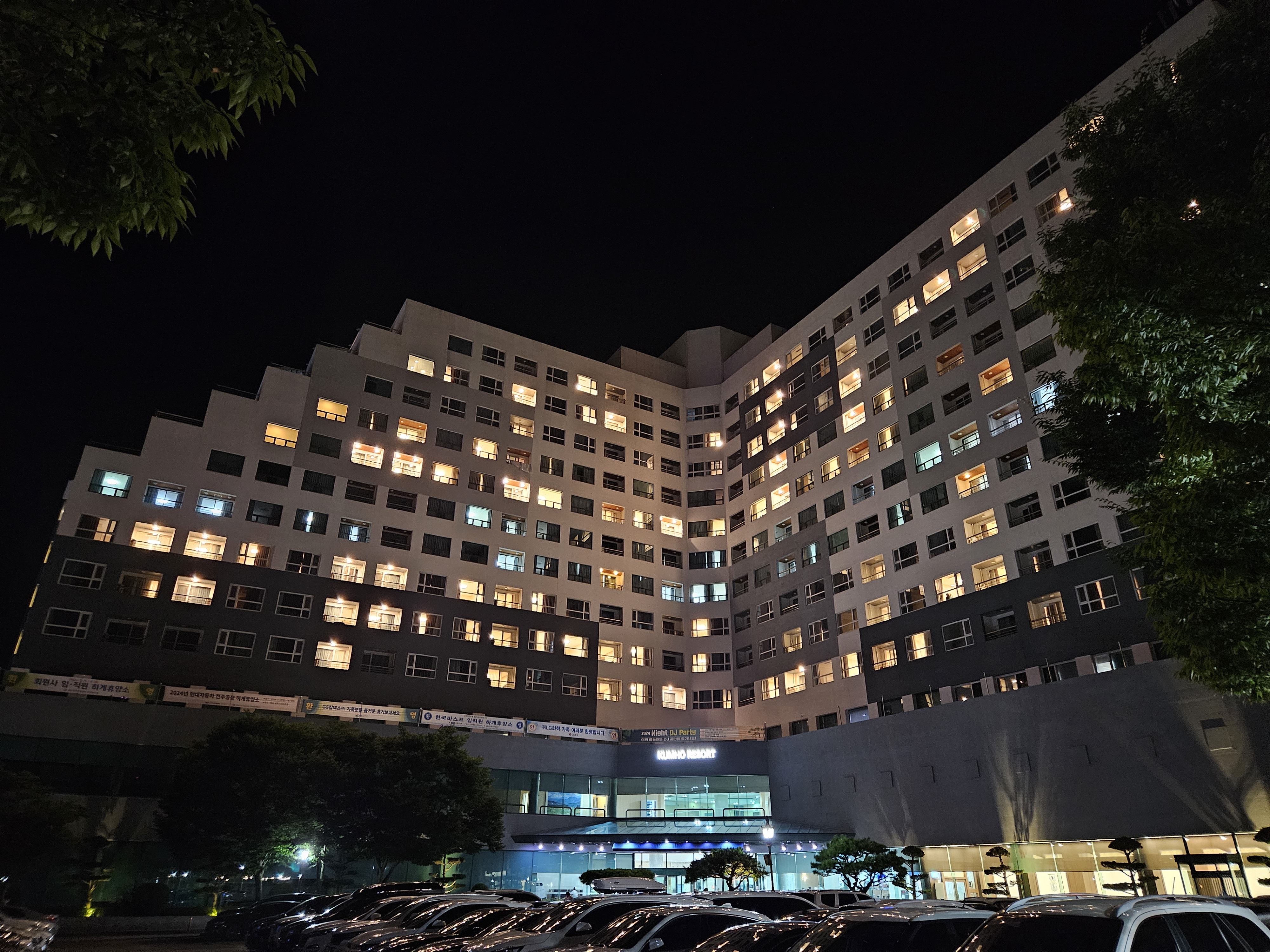 금호화순스파리조트 주차장은 무척 넓은데, 성수기엔 숙소 앞 주차장이 만차입니다.