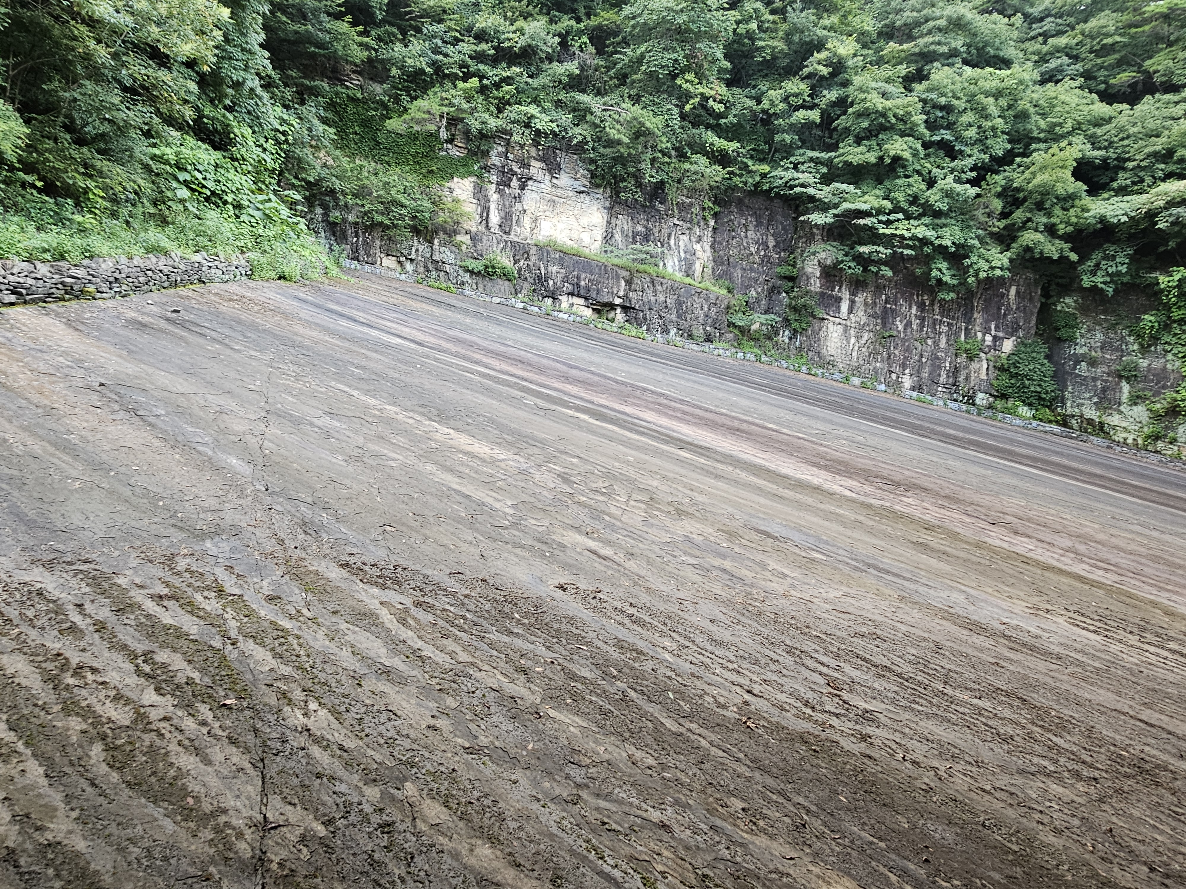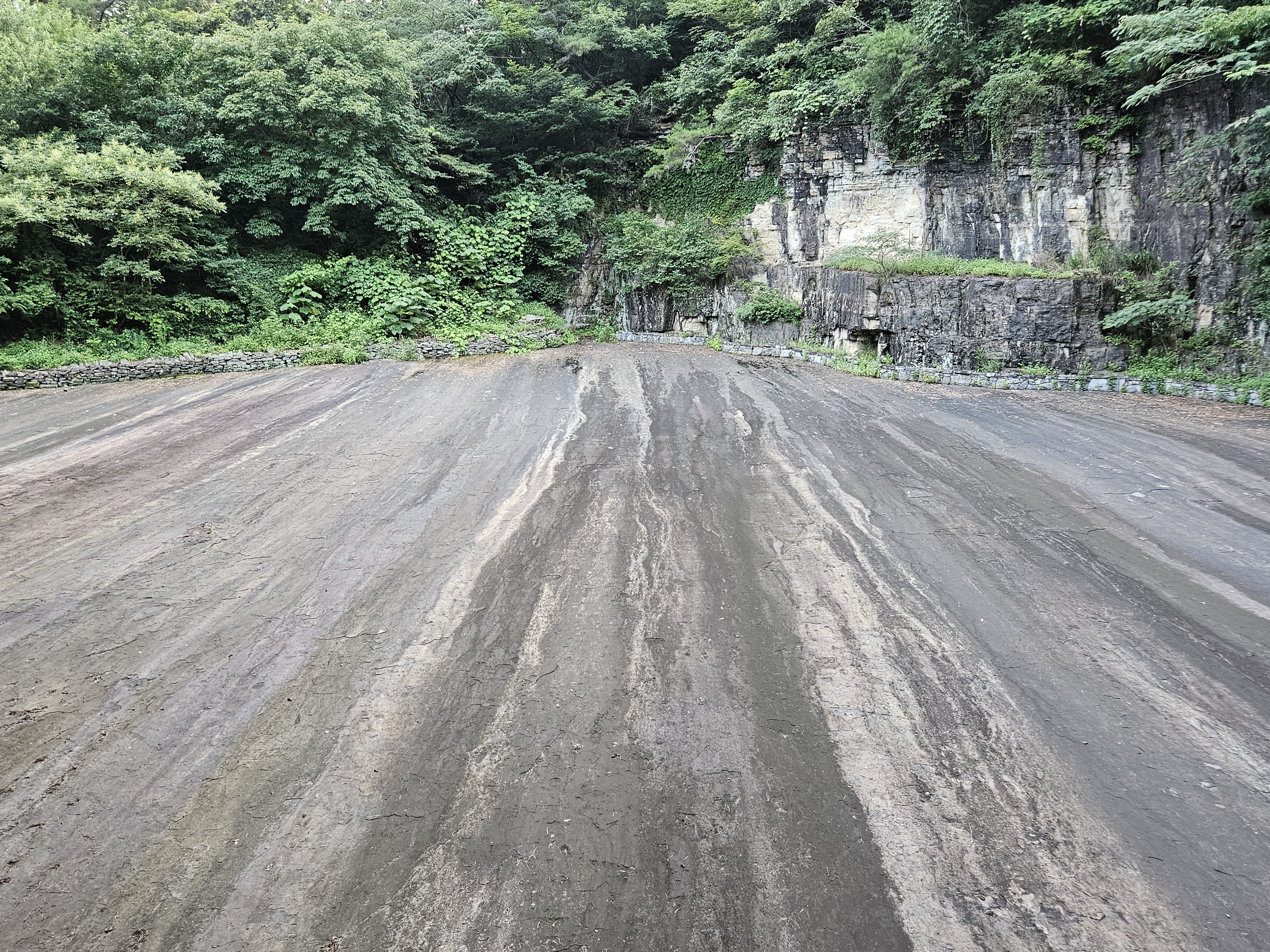 공룡발자국 화석산지 뒤쪽엔 경사로의 대형 암반이 장리하고 있습니다.