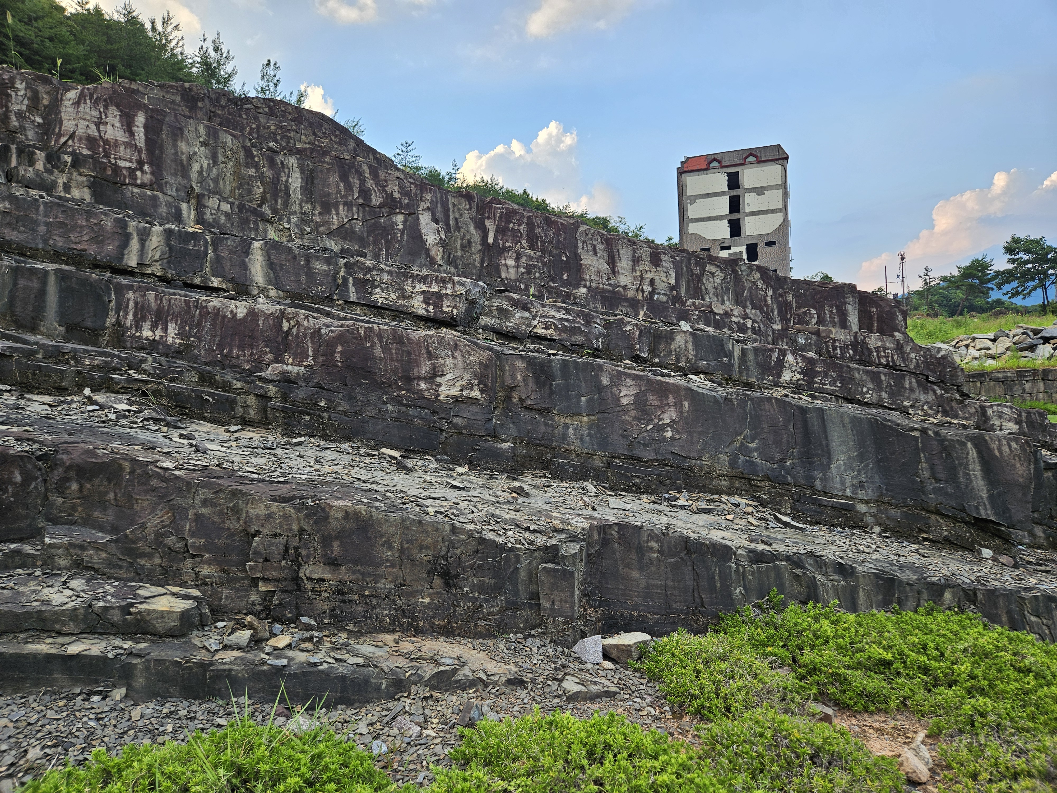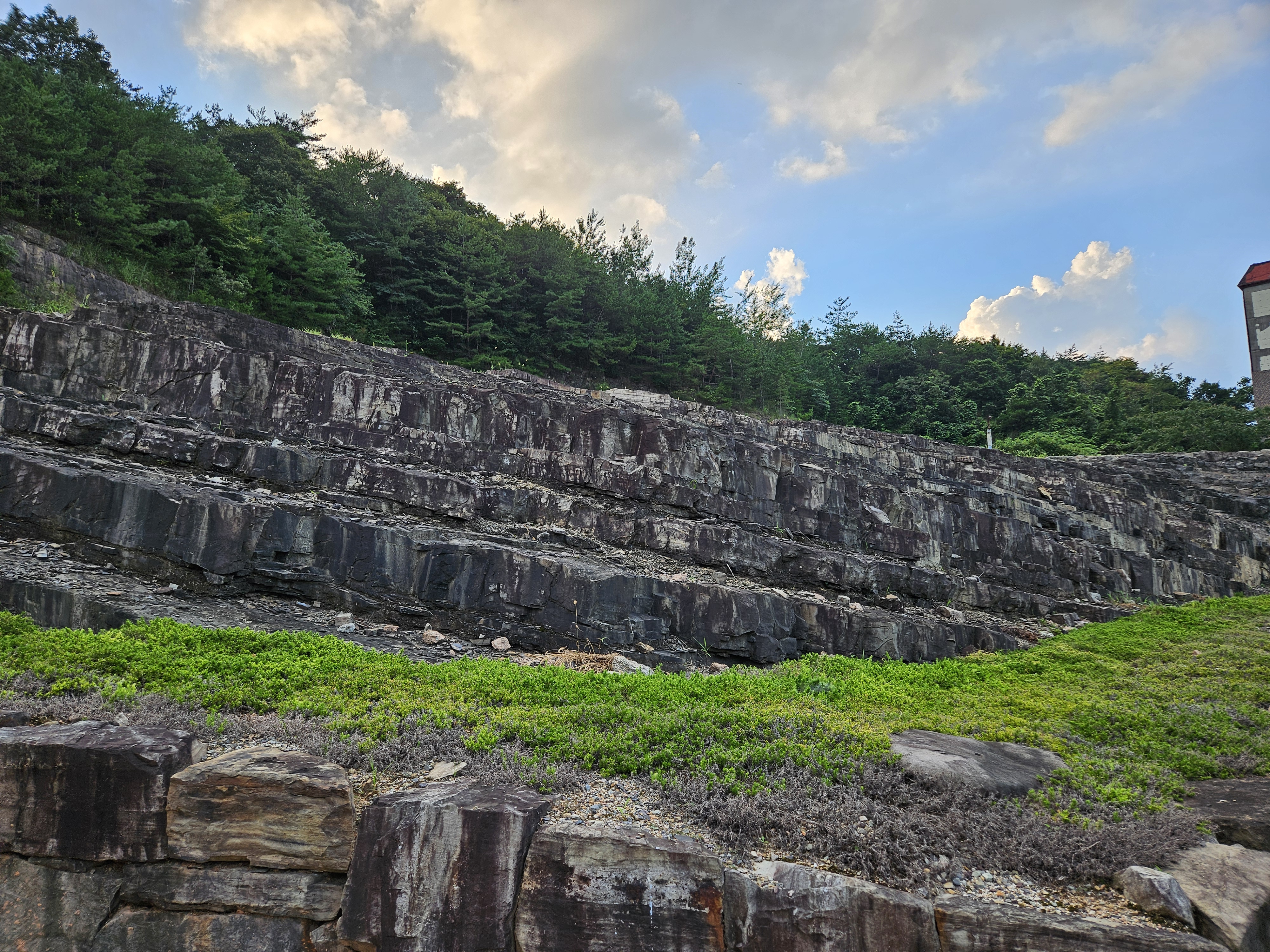 이런 독특한 지질구조에서 나온 돌들, 아마도 채석장에서 채굴한 돌들을 한 곳에 모아 전시하고 있네요.