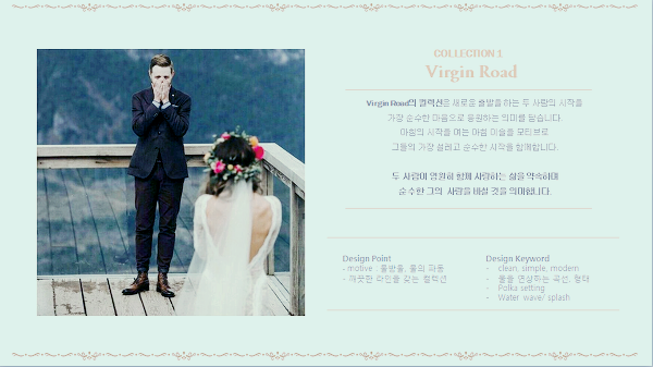 Vergin road 컬렉션은 새로운 출발을 하는 두 사람의 시작을 가장 순수한 마음으로 응원하는 의미를 갖고 있습니다.