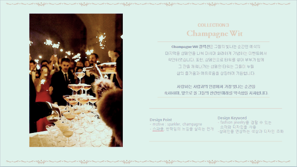 Champagne wit컬렉션은 그들의 빛나는 순간인 예식의 마지막을 샴페인을 나눠 마시며 화려하게 기념하는 이벤트에서 착안한 것입니다.