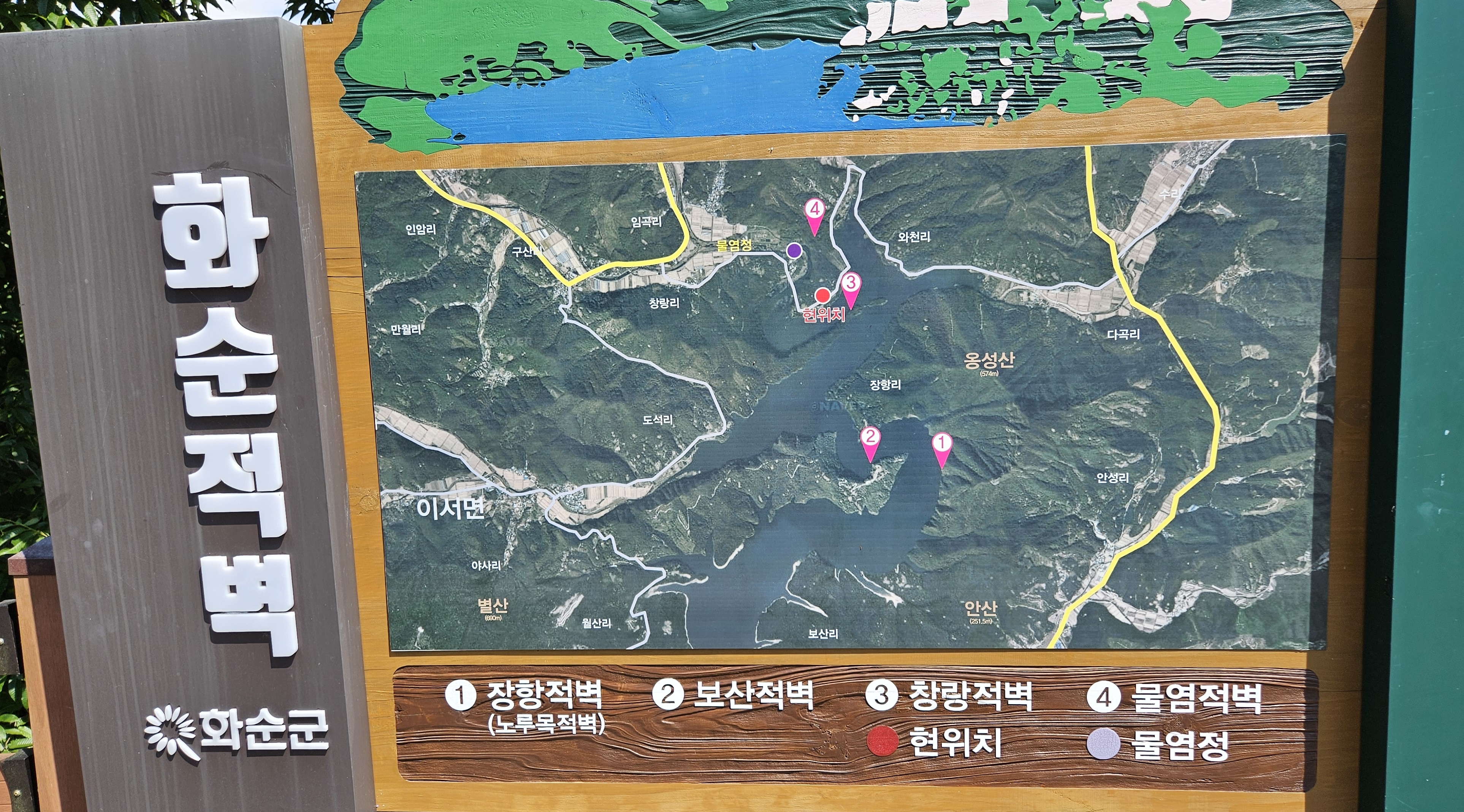 동복호 수몰지역에 있는 장항적벽(노루목적벽)과 보산적벽은 화순적벽 버스투어를 통해서만 구경할 수 있고, 물염적벽과 창랑적벽은 본인의 차량으로 자유롭게 관람할 수 있습니다.