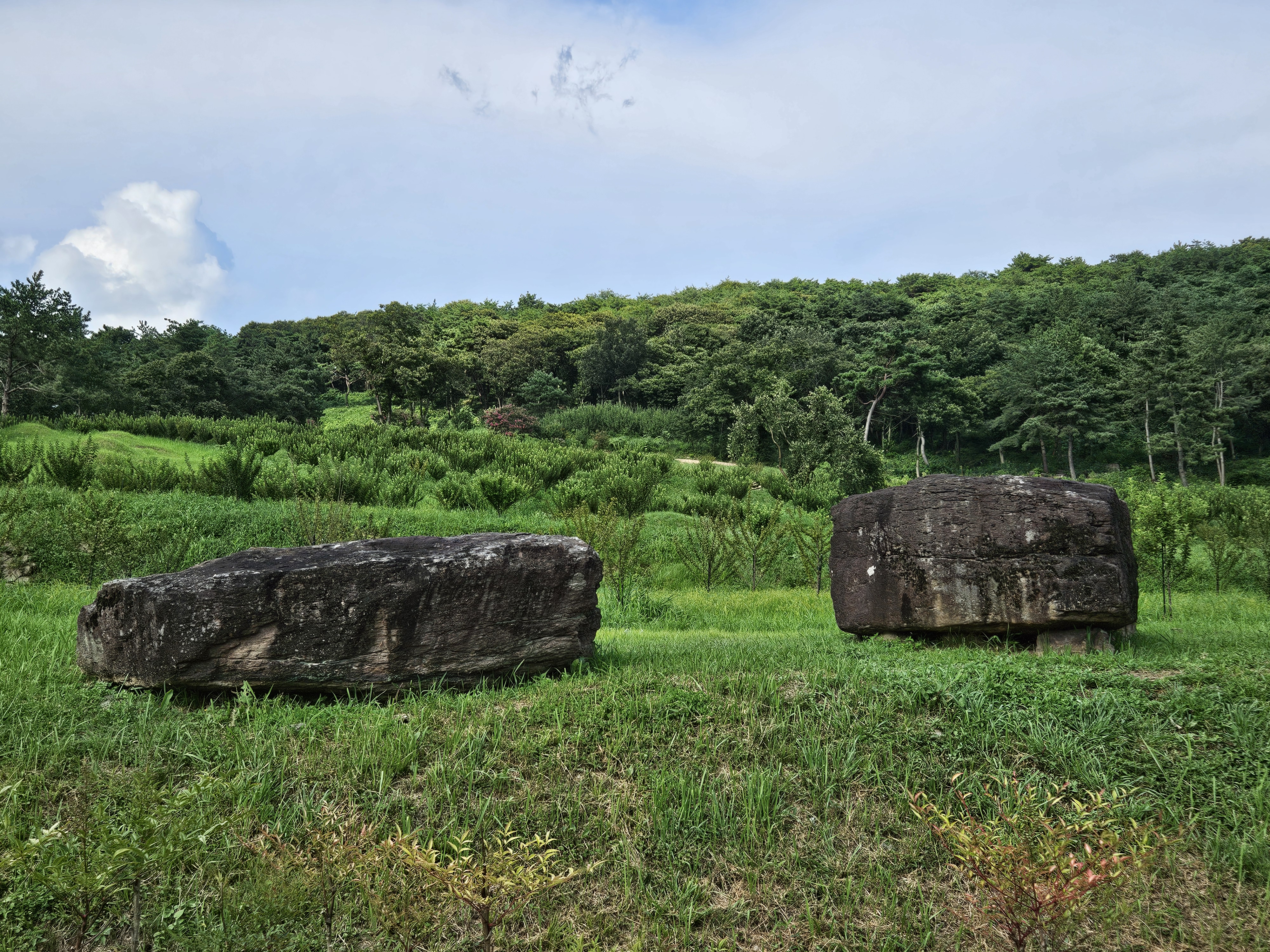 이곳에서는 민무늬토기 조각과 돌화살촉이 발견되어 청동기시대 고인돌군임을 증명하고 있답니다.