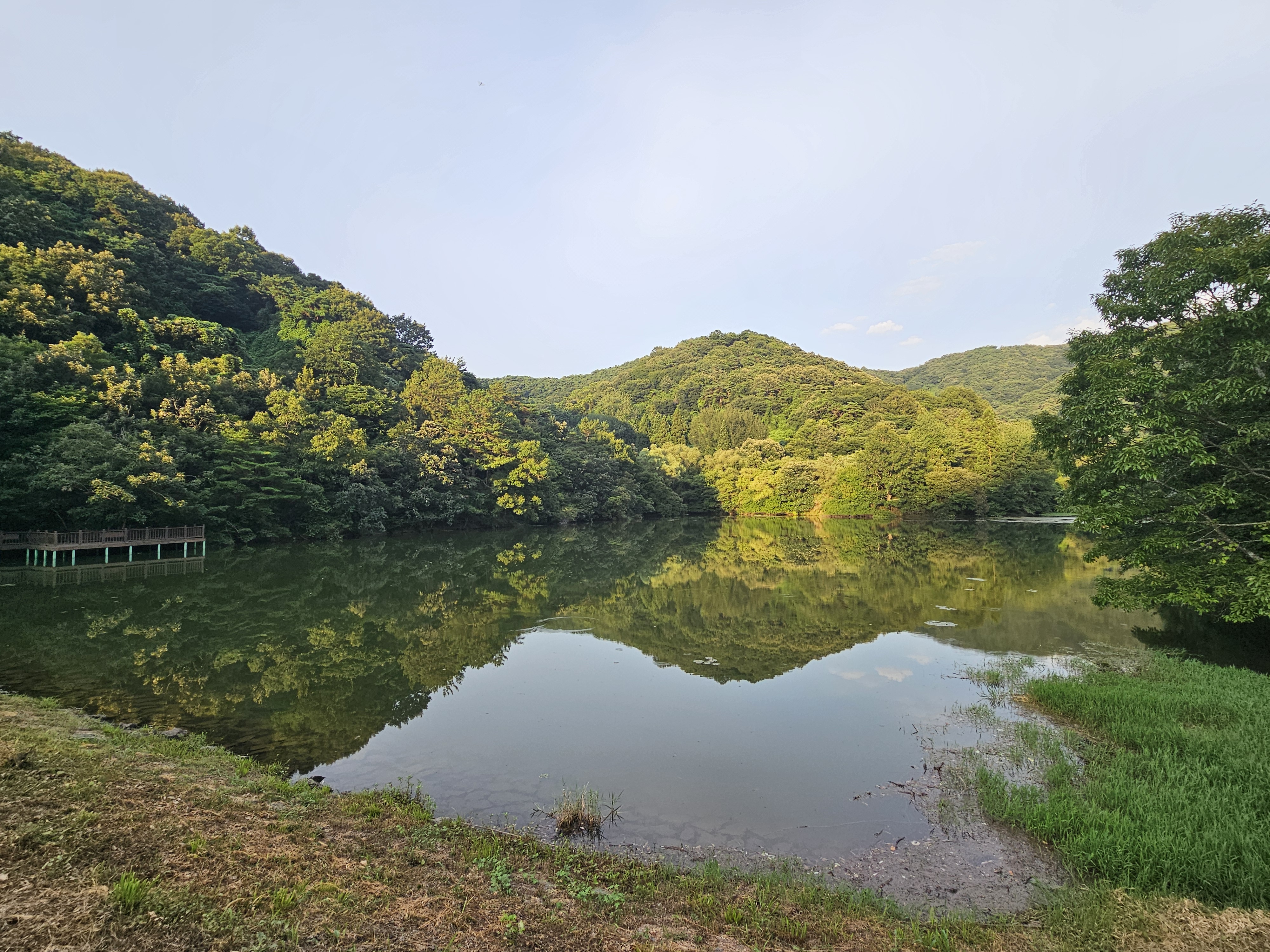 제방 아래 방금 걸어왔던 세량제생태공원 풍경입니다.