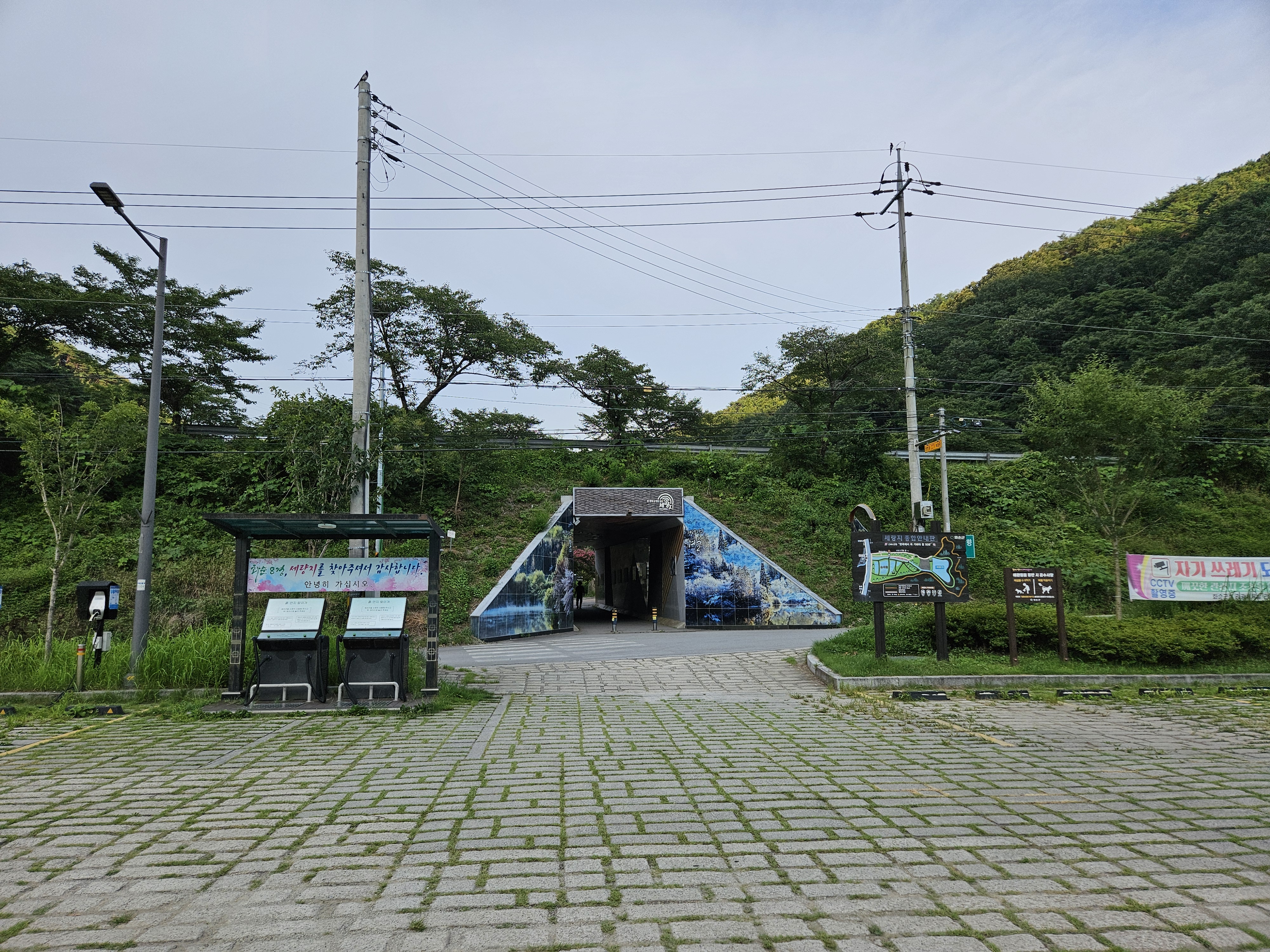 입구 쪽에 관리사무소로 보이는 건물이 있는데, 이곳에 화장실과 자판기가 있습니다.