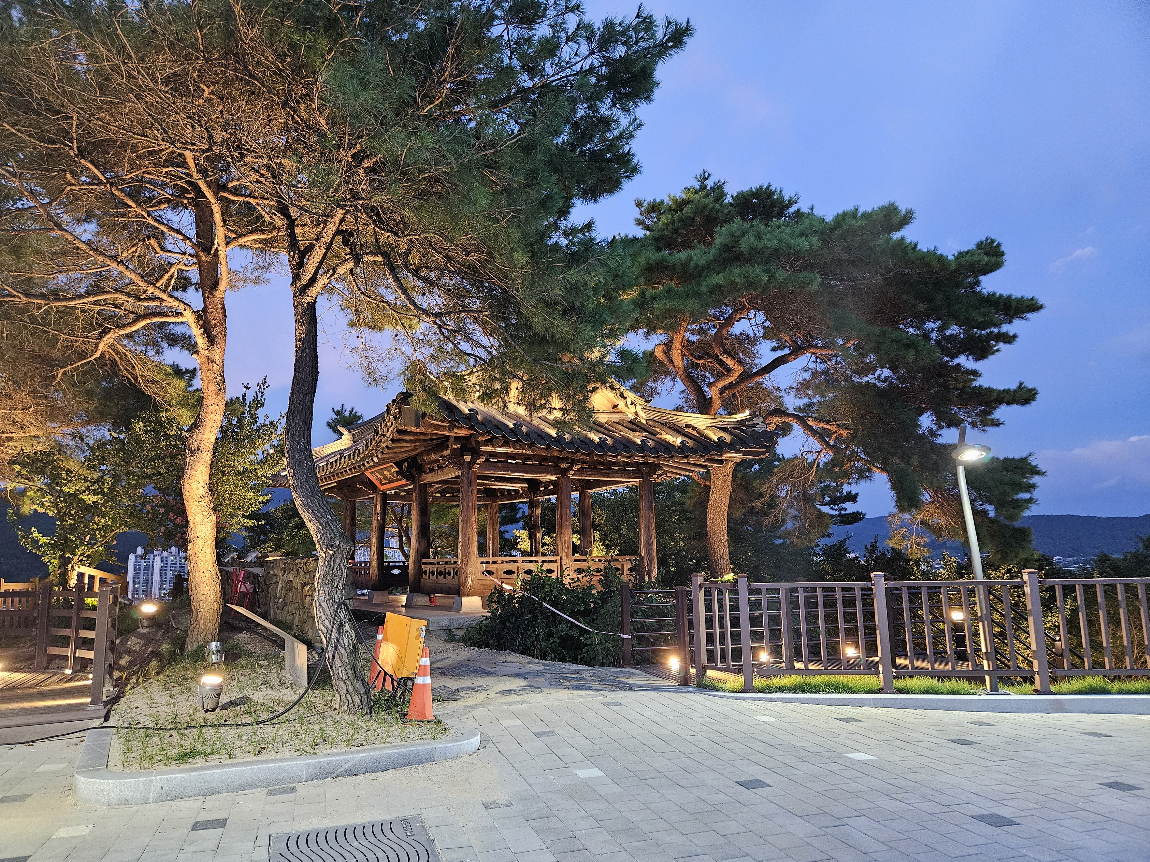 내려오니 개미산 전망대 앞 정자 불빛이 운치 있습니다.