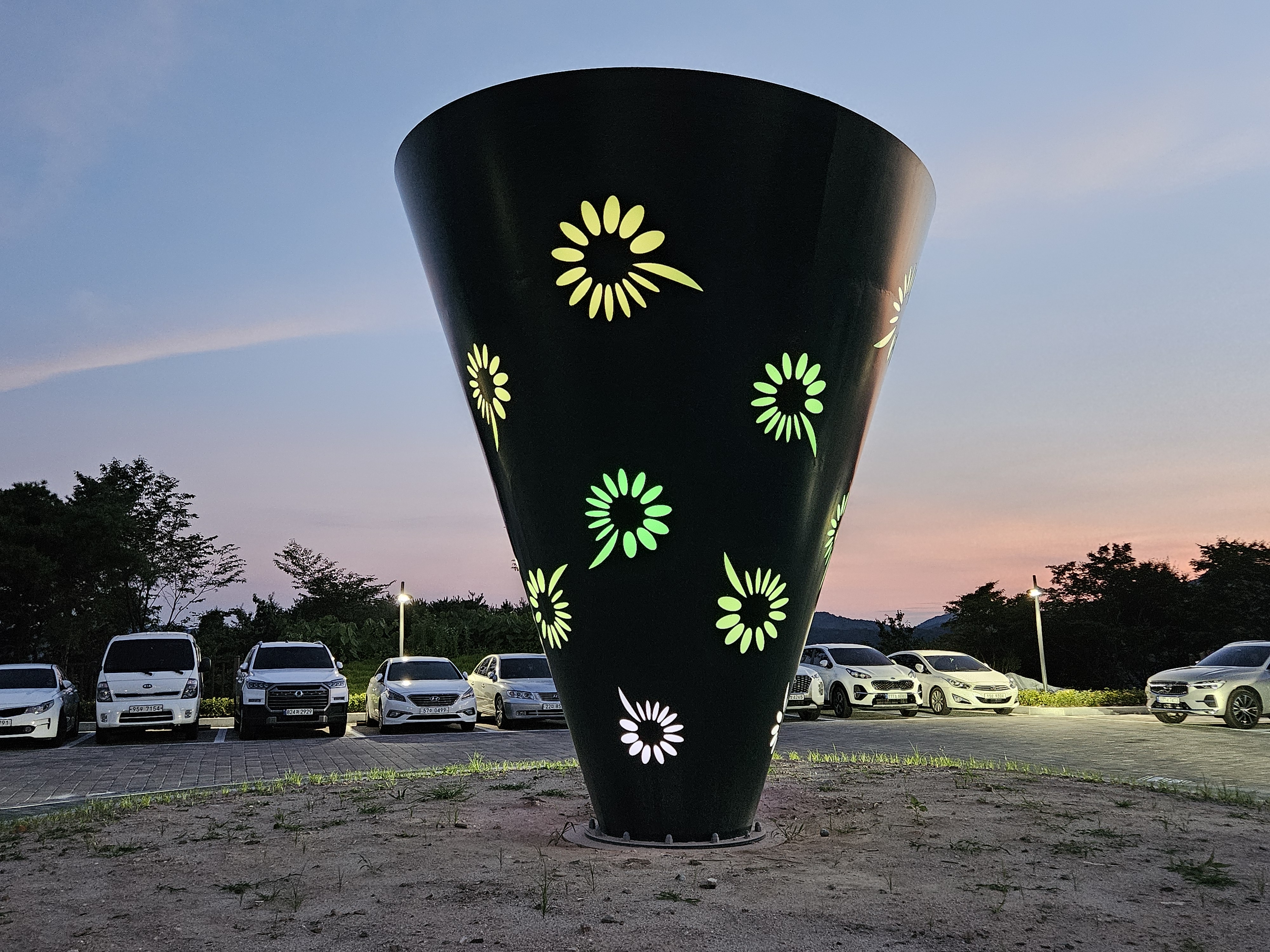 개미산 전망대 상징조형물에도 빛이 들어왔습니다.