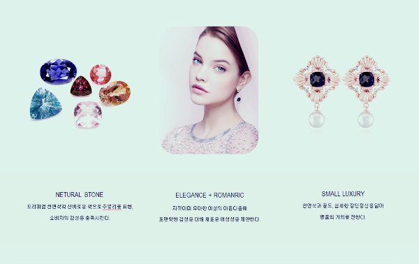 또한 프리미엄 천연석의 신비로운 색으로 주얼리를 표현하여 소비자의 감성을 충족시키고, 지적이며 우아한 여성의 아름다움에 로맨틱한 감성을 더해 새로운 여성성을 제안하며 천연석과 골드, 섬세한 장인정신을 담아 명품의 가치를 전하는데 목적이 있습니다.