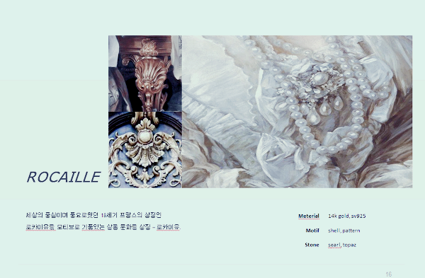 로쉘 주얼리의 탄생배경은 Salon(18세기 프랑스 예술의 중심공간이자 신분의 벽을 깬 귀족문화), Precieuse(지적이며 우아한 여성의 아름다움을 충기는 문화예술의 전달자), French antique(장식적인 미가 풍부한 프렌치스타일 시간이 흐를수록 고풍스런 가치를 전함) 입니다.