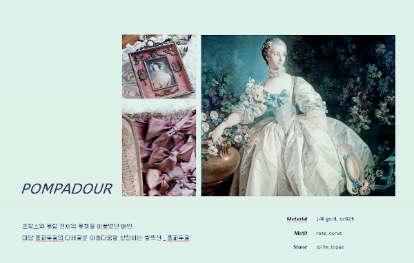 Pompadour 컬렉션은 프랑스와 유럽 전체의 유행을 이끌었던 여인, 마담 퐁파두르의 다채로운 아름다움을 상징하는 컬렉션입니다.