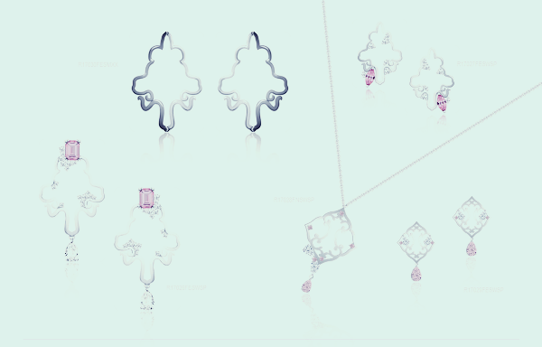 컬렉션의 상징인 장미 모티브를 중심으로 덩굴 사이사이에 반짝이는 스톤이 화려한 퐁파두르 컬렉션을 대표합니다.