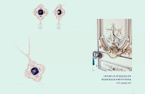 18세기 프랑스의 상징인 로카이유의 조개 모티브를 중심으로 우아한 장식성을 대표하며, sv925와 스와로브스키 크리스탈을 사용합니다.