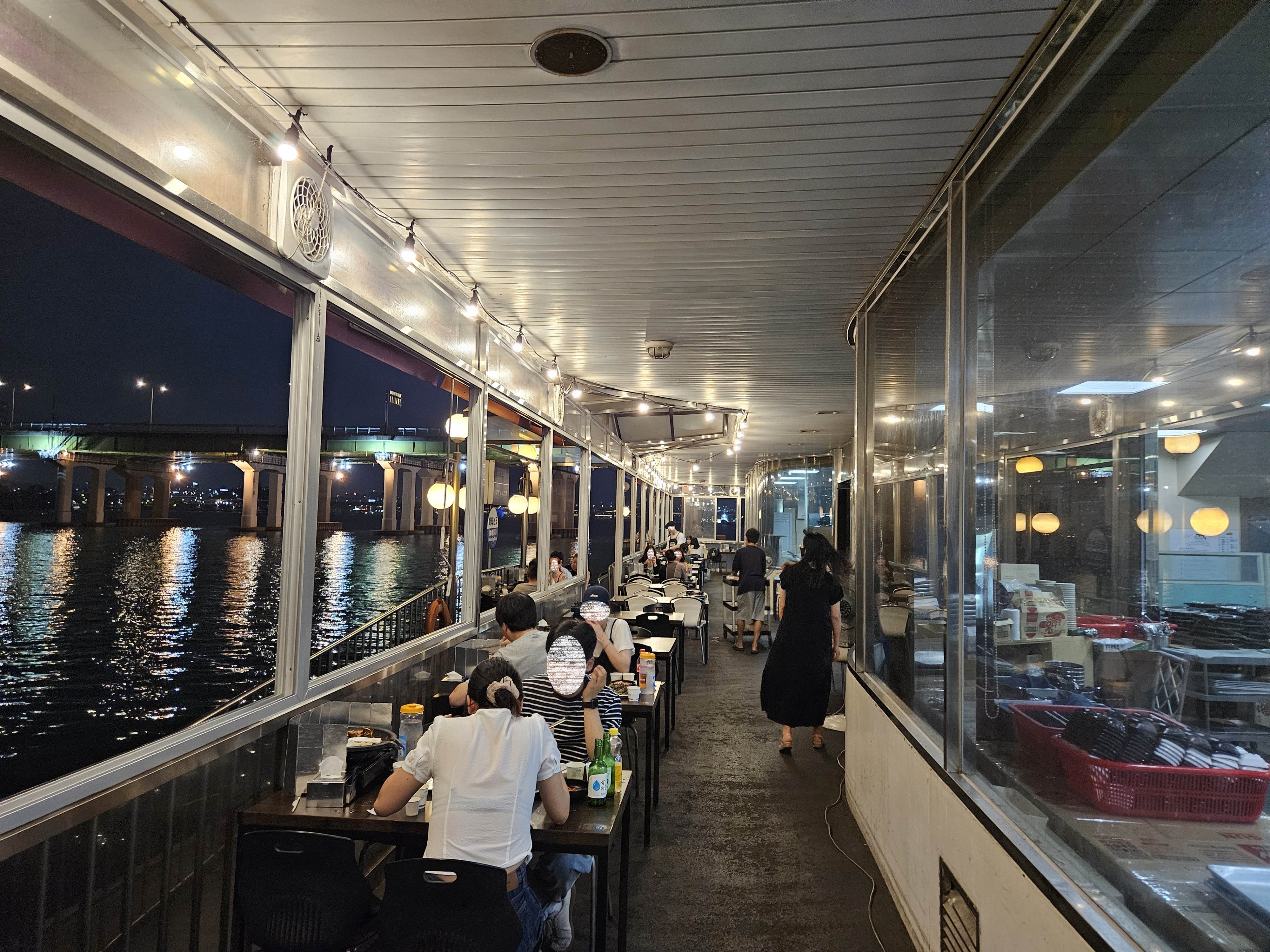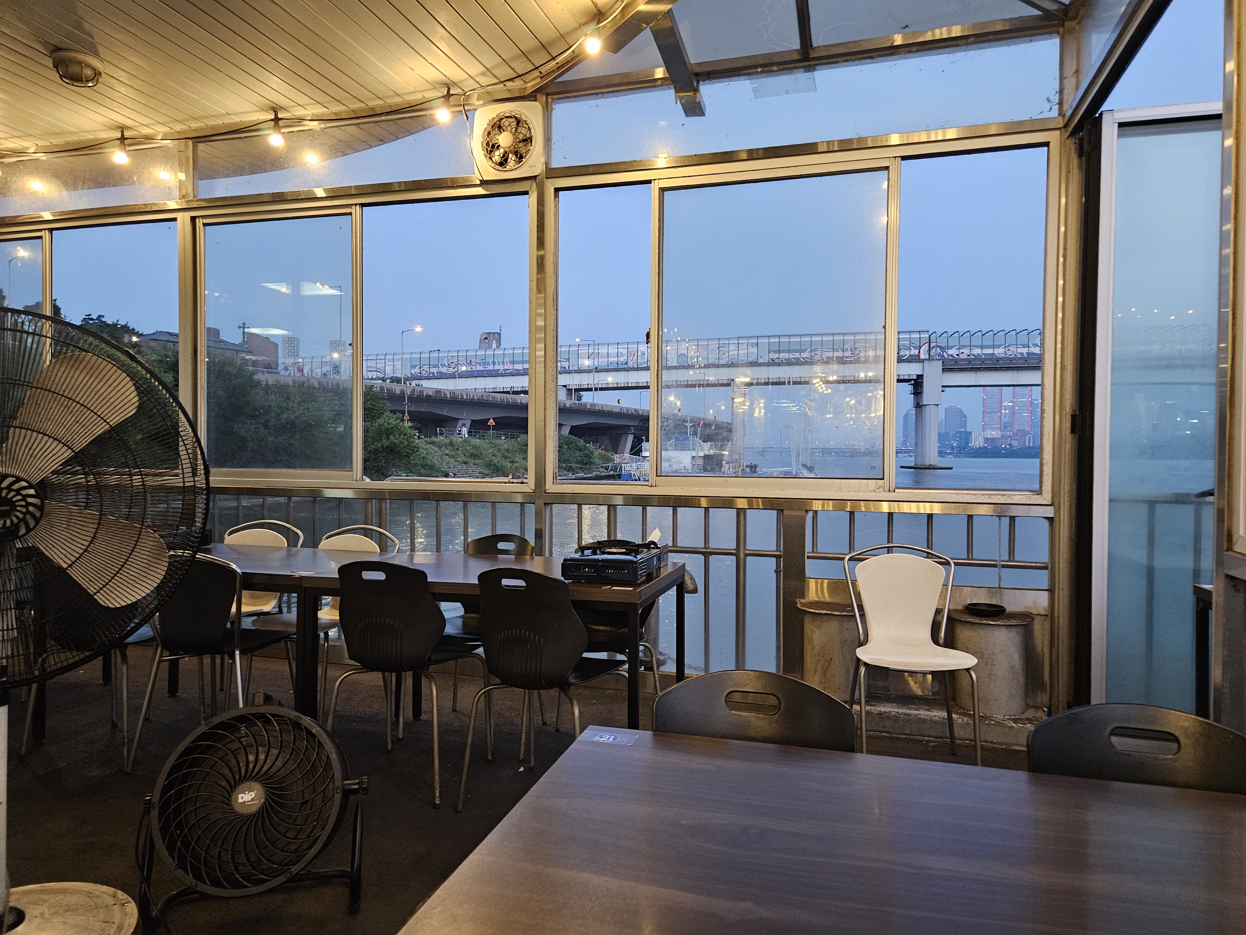 한강변으로 길게 놓인 테이블