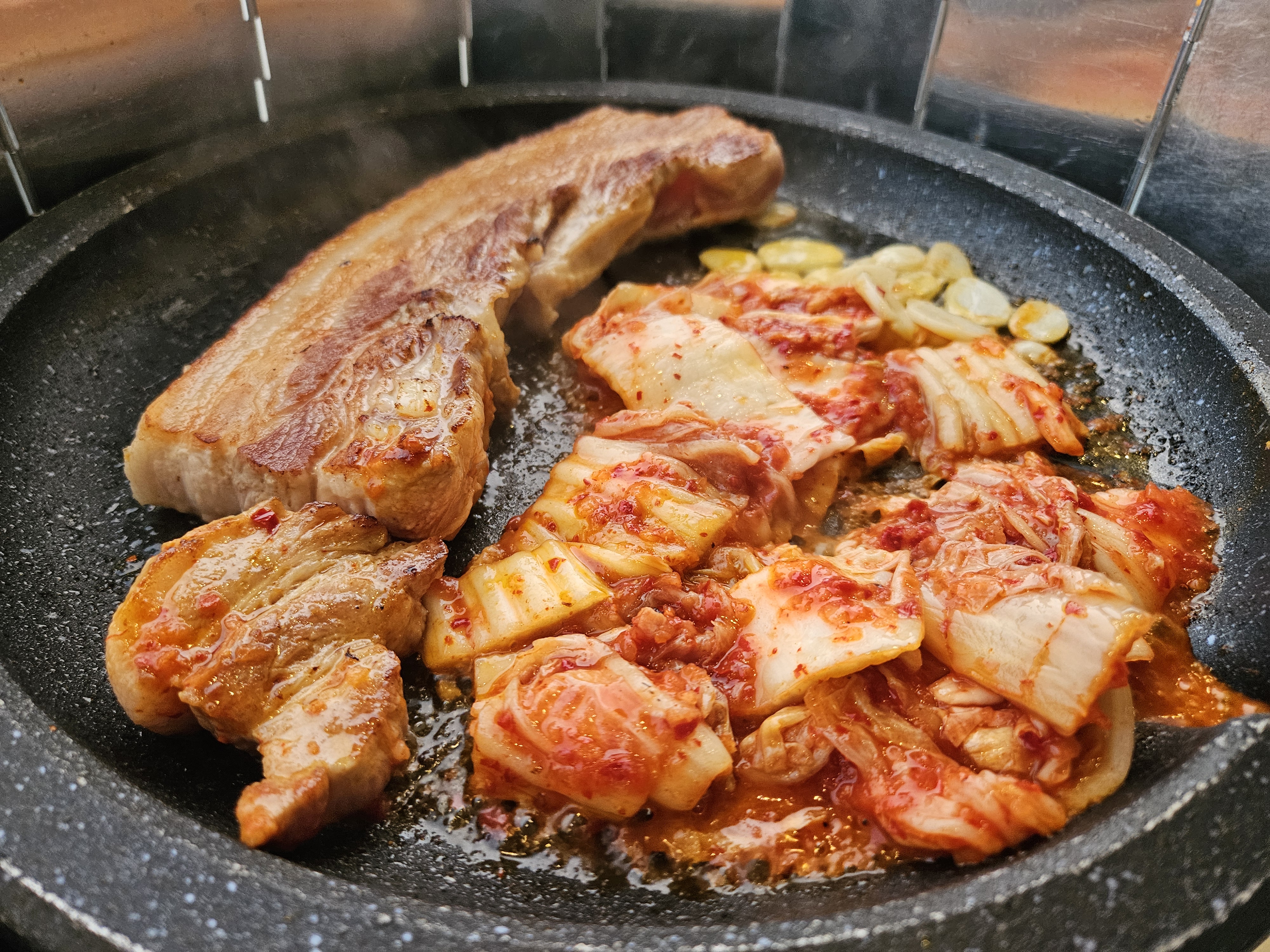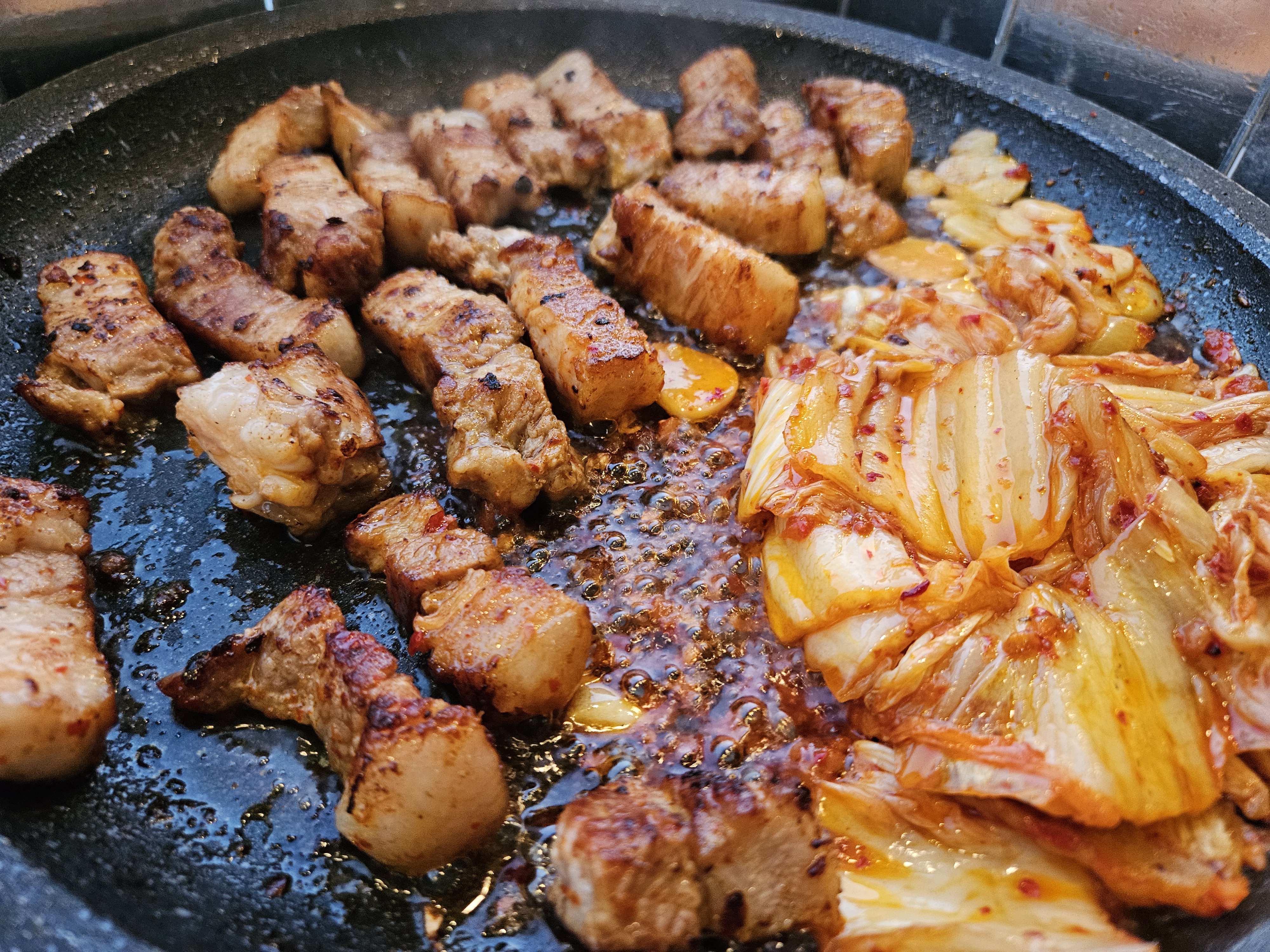 고기가 익어가니 먹음직스럽게 변했네요.