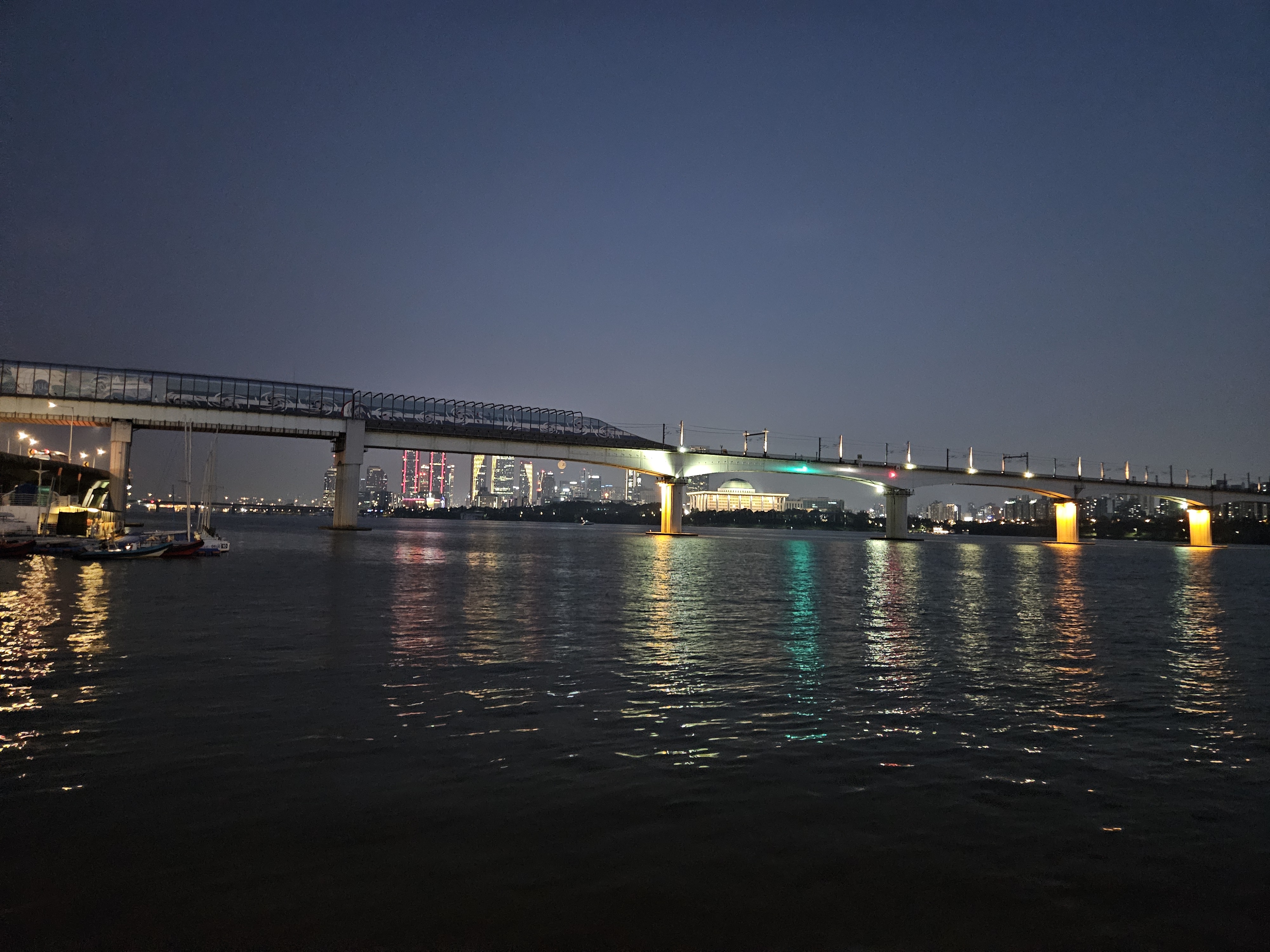 어느새 주변은 어두워지고, 당산철교와 여의도 야경이 눈에 들어옵니다.