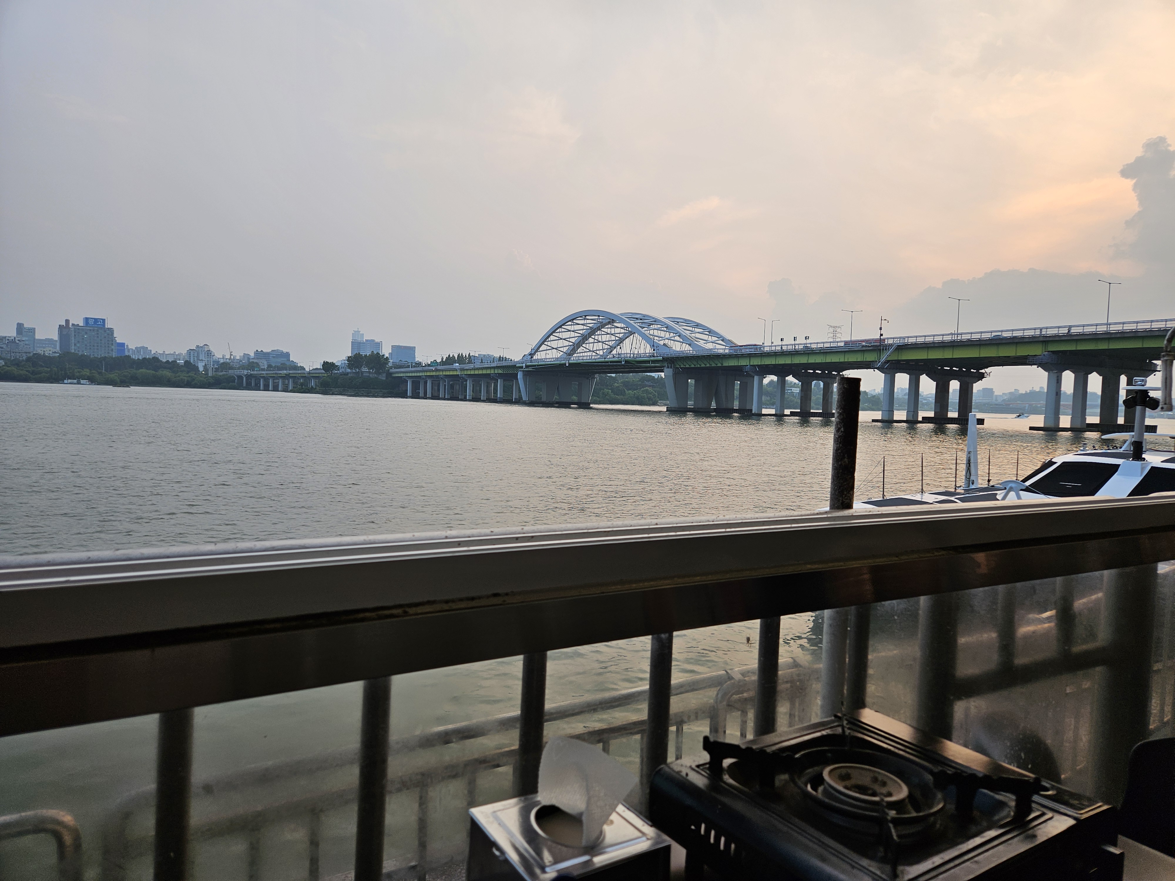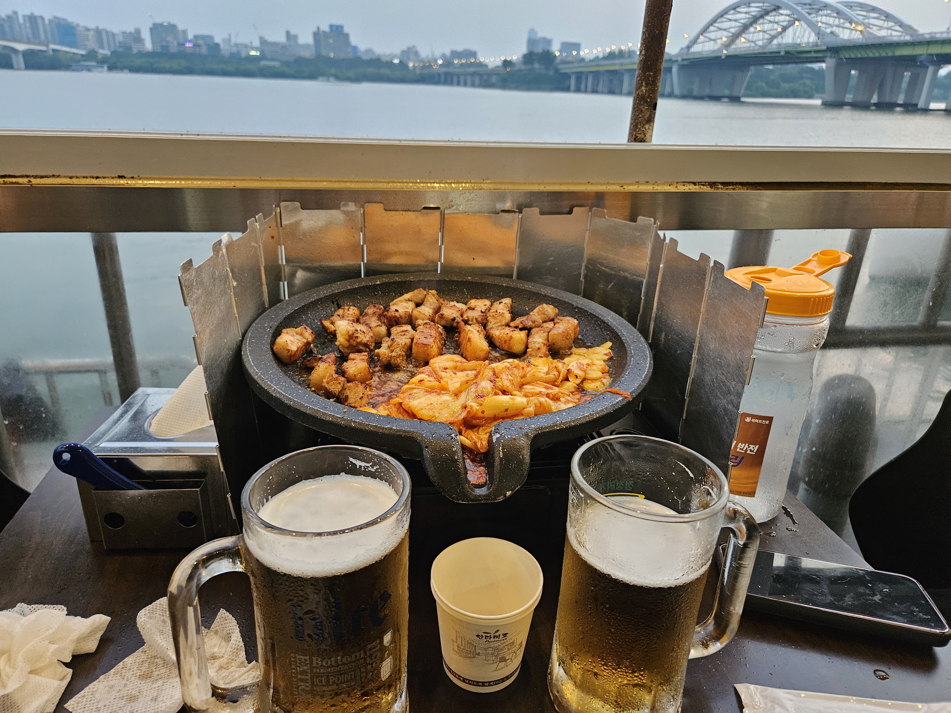 한강을 바라보며 야외에서 이렇게 먹으니 맛은 두 배가 됩니다.