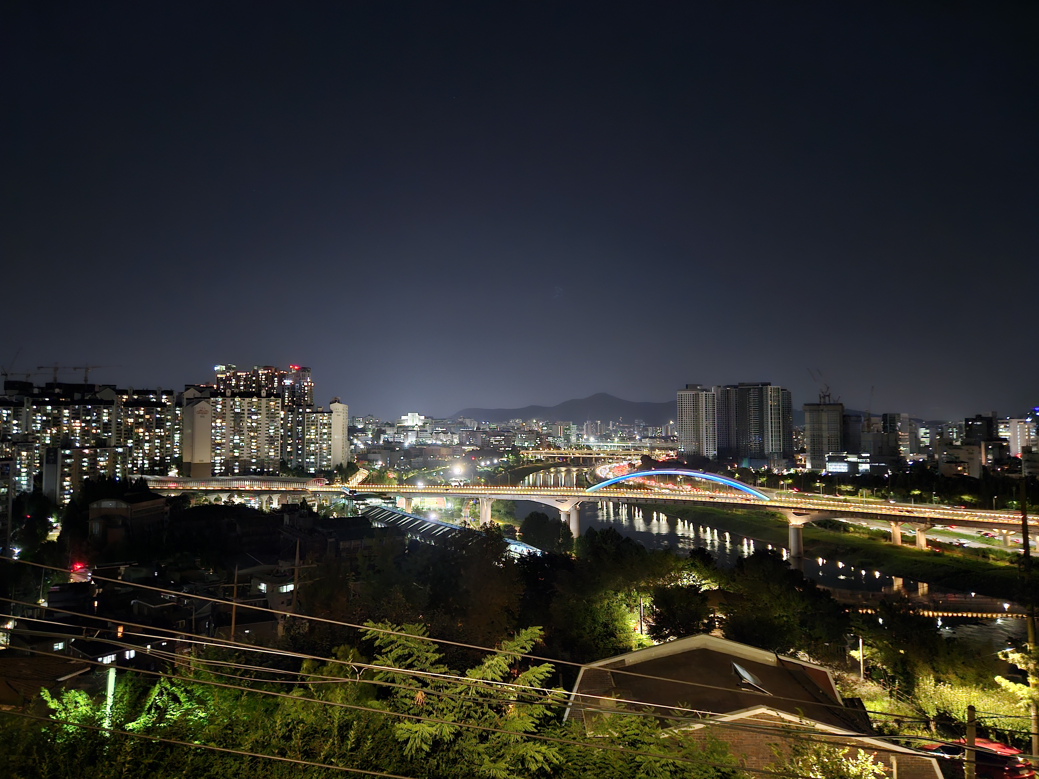계단 30여개만 올라도 이렇게 아름다운 중랑천과 응봉교 야경이 눈에 들어옵니다.
