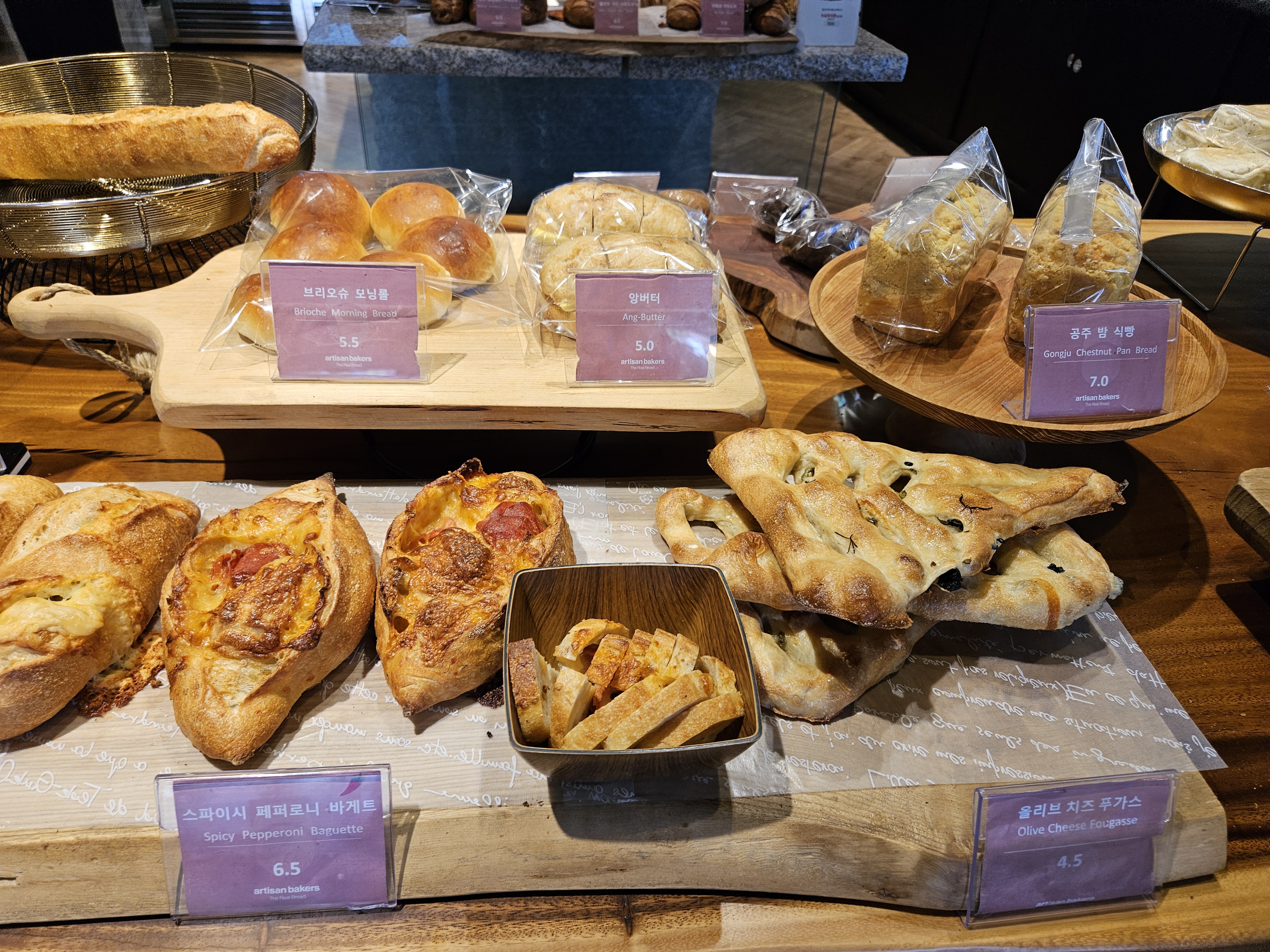 아티장베이커스에서는 바게트, 크루아상, 타르트와 같은 다양한 프랑스식 빵과 페이스트리를 맛볼 수 있는데요.