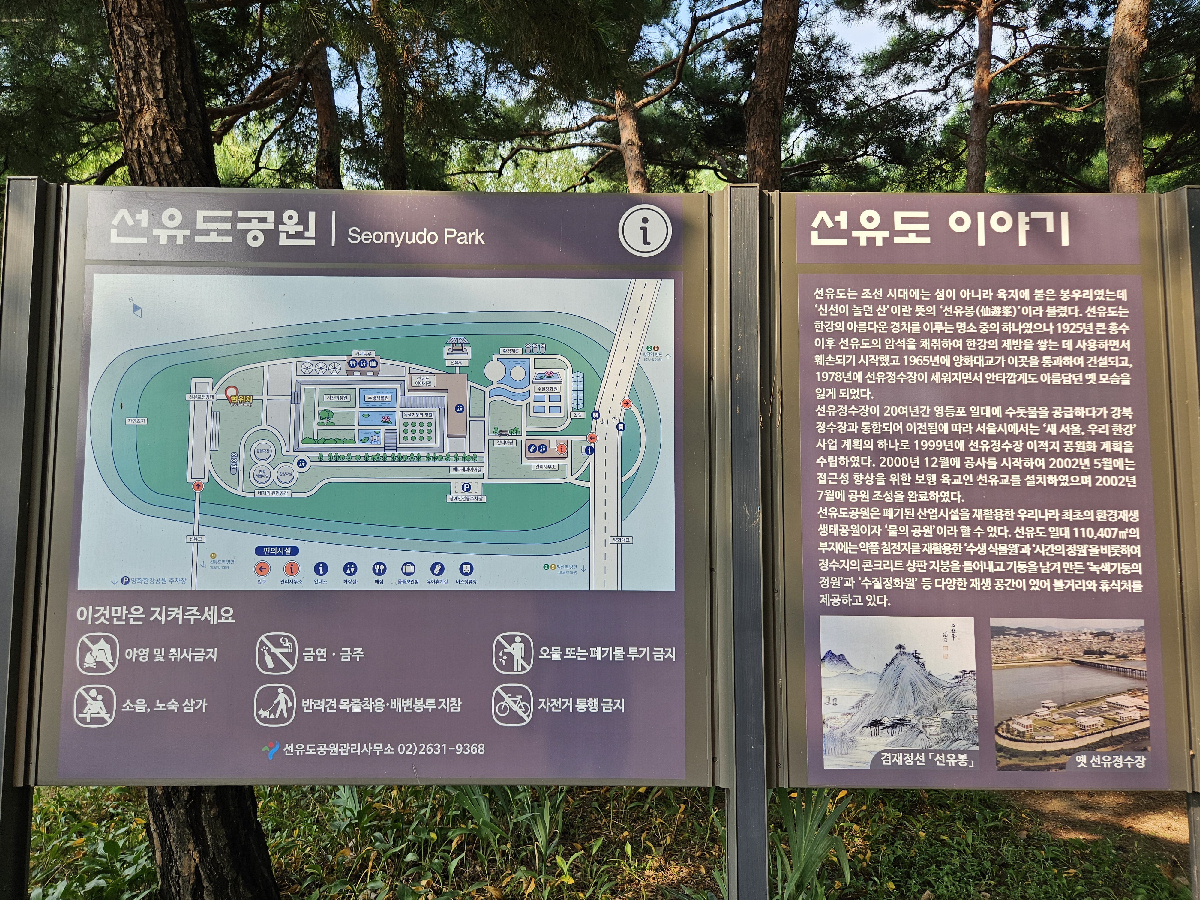 이곳의 선유정수장은 20여 년간 영등포 일대에 수돗물을 공급하다가 강북정수장과 통합, 이전되면서 공원화계획 이후 2002년 지금의 선유도공원이 개방된 것입니다.