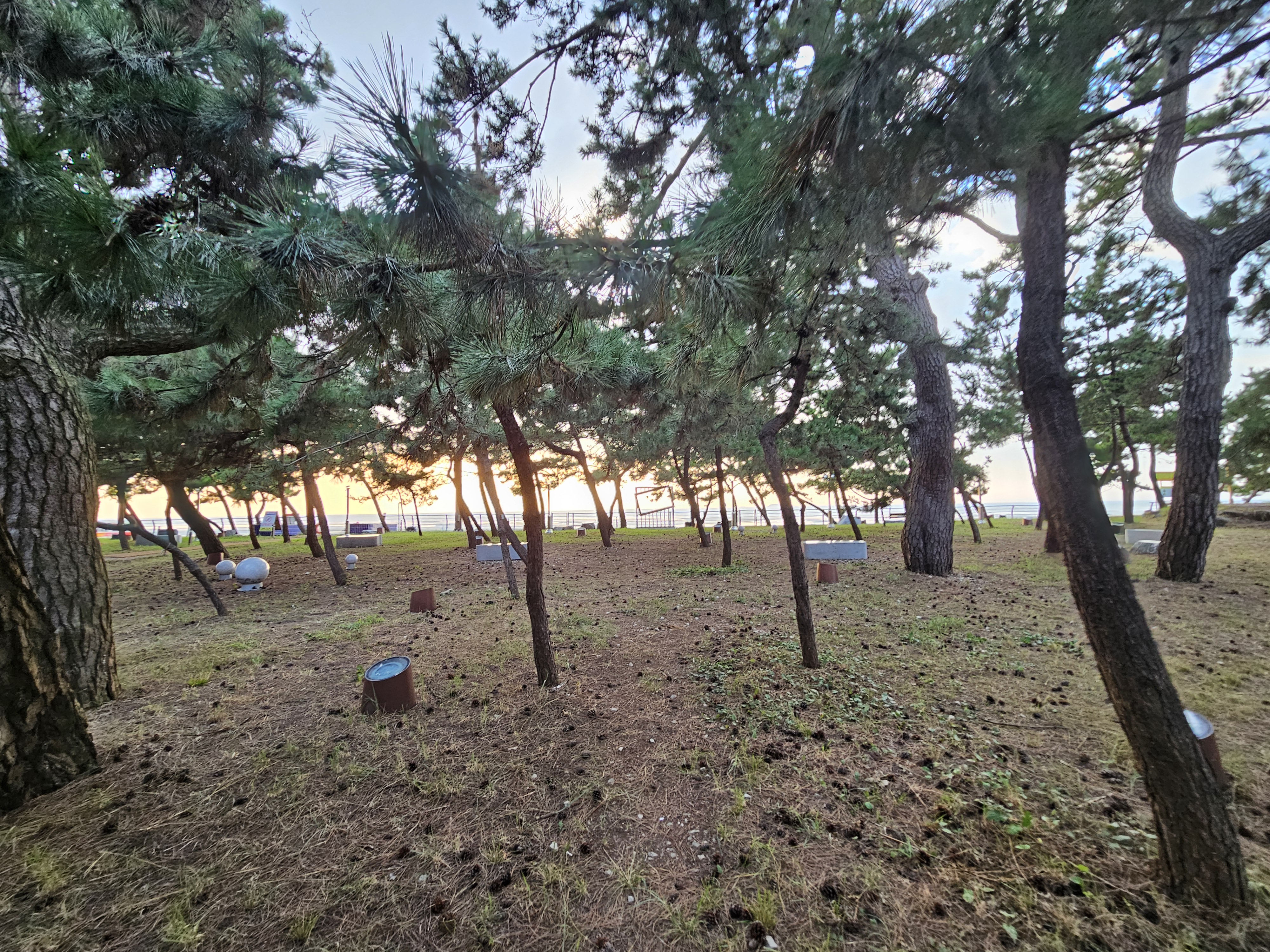 남쪽 해변 방향의 소나무 그늘엔 늦더위에 많은 캠핑족들이 야영을 하고 있더군요.