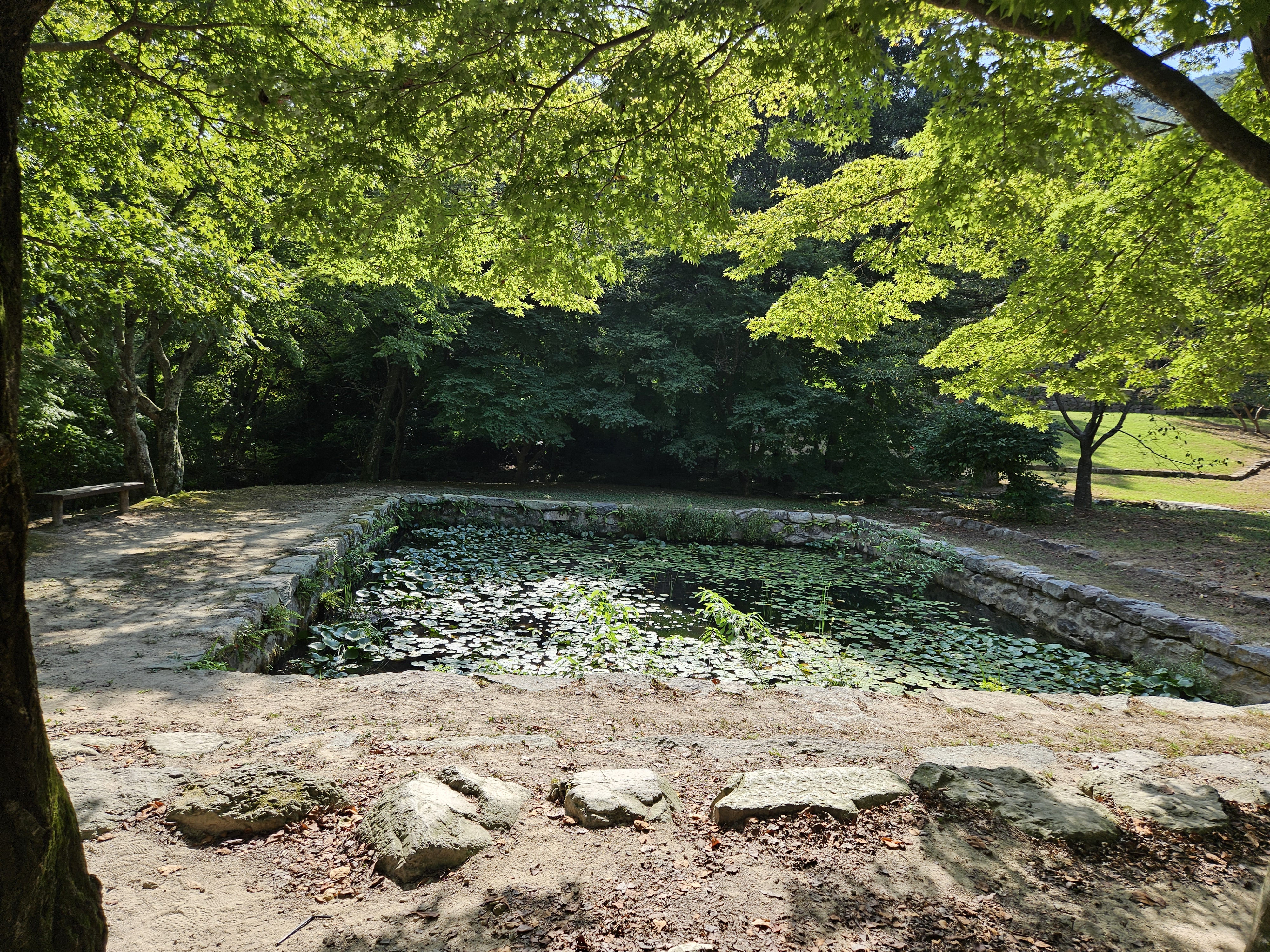장금이 때문에 한상궁이 경합에 져서 한상궁에게 책망당할 걸 생각하며 우울한 표정으로 연못에 돌을 던지는 장면과 그 모습을 바라보는 민정호의 모습이 그려지던 곳입니다.