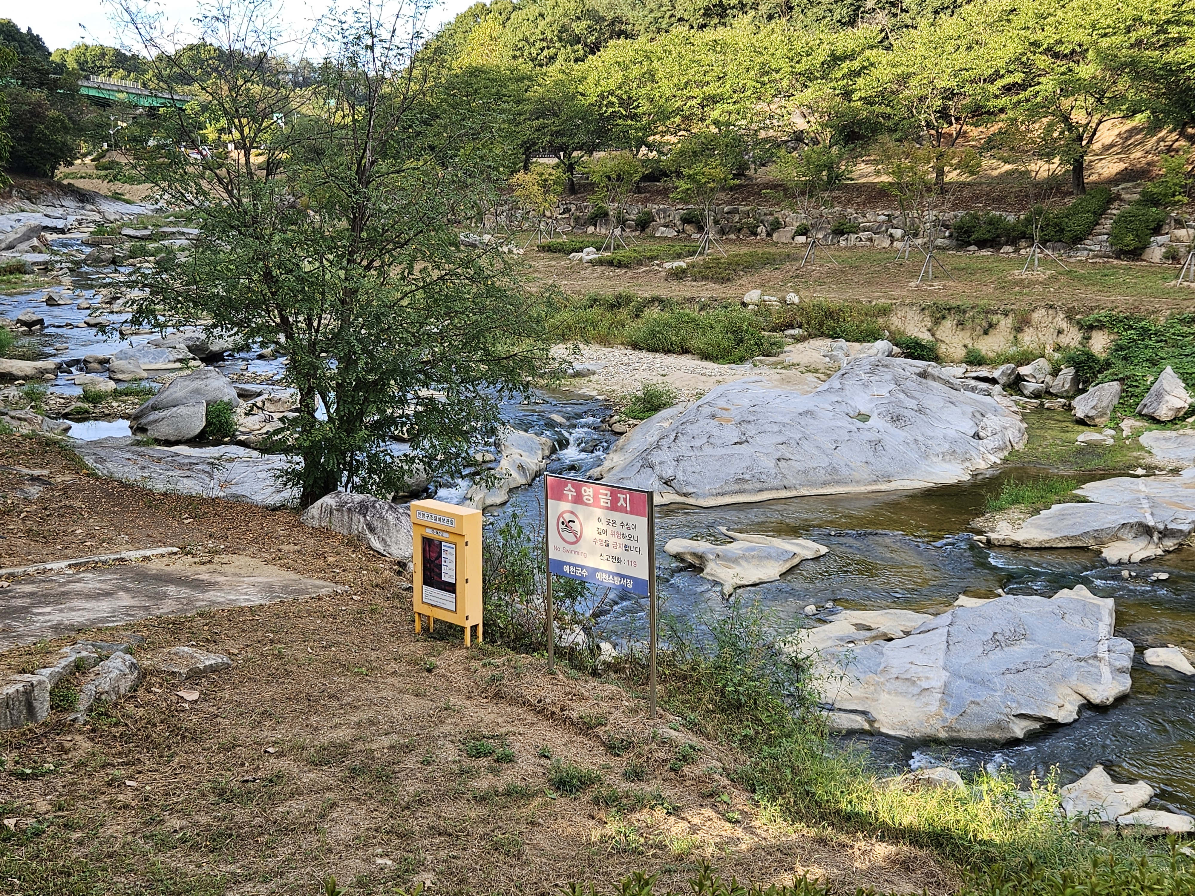 예천 수락대 구간의 석관천은 수심이 깊어 수영을 금지하고 있네요.