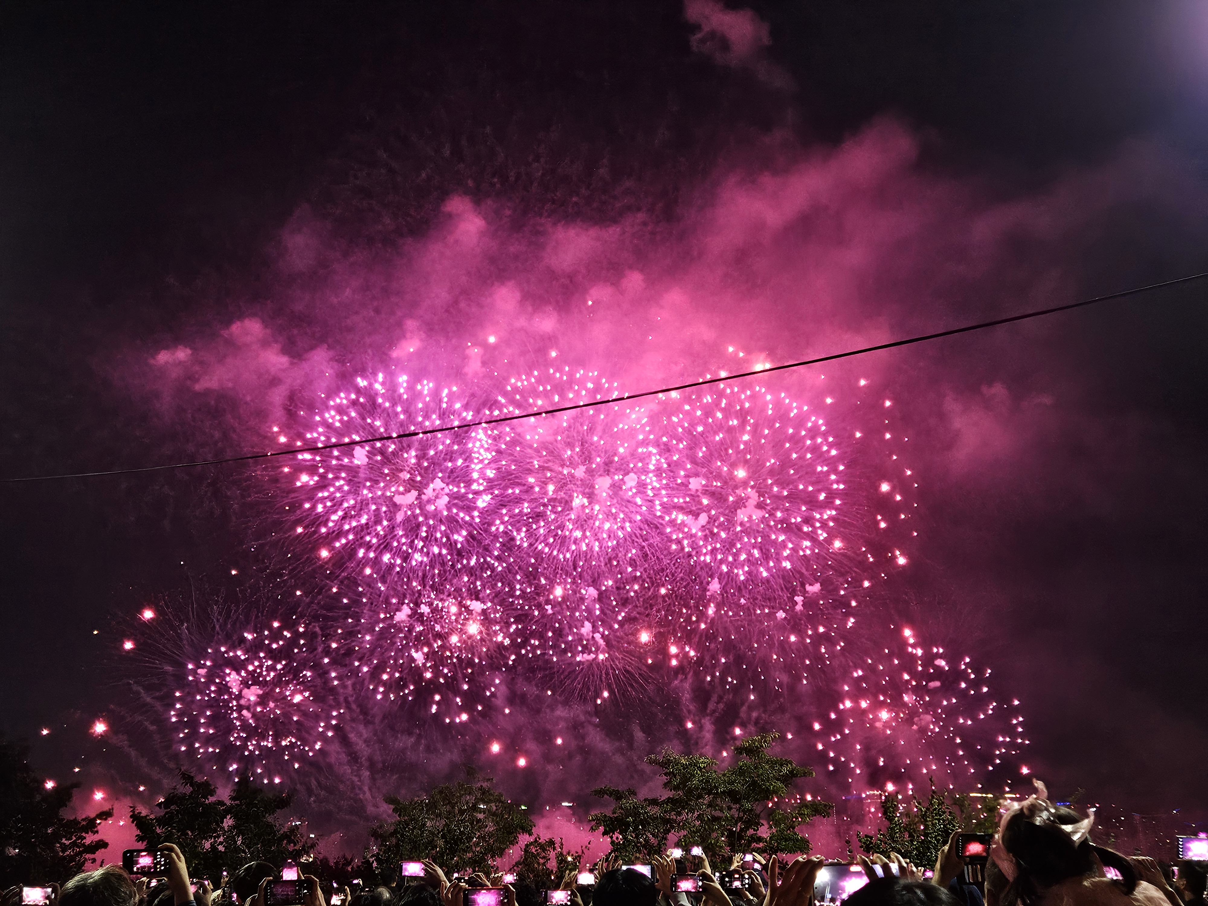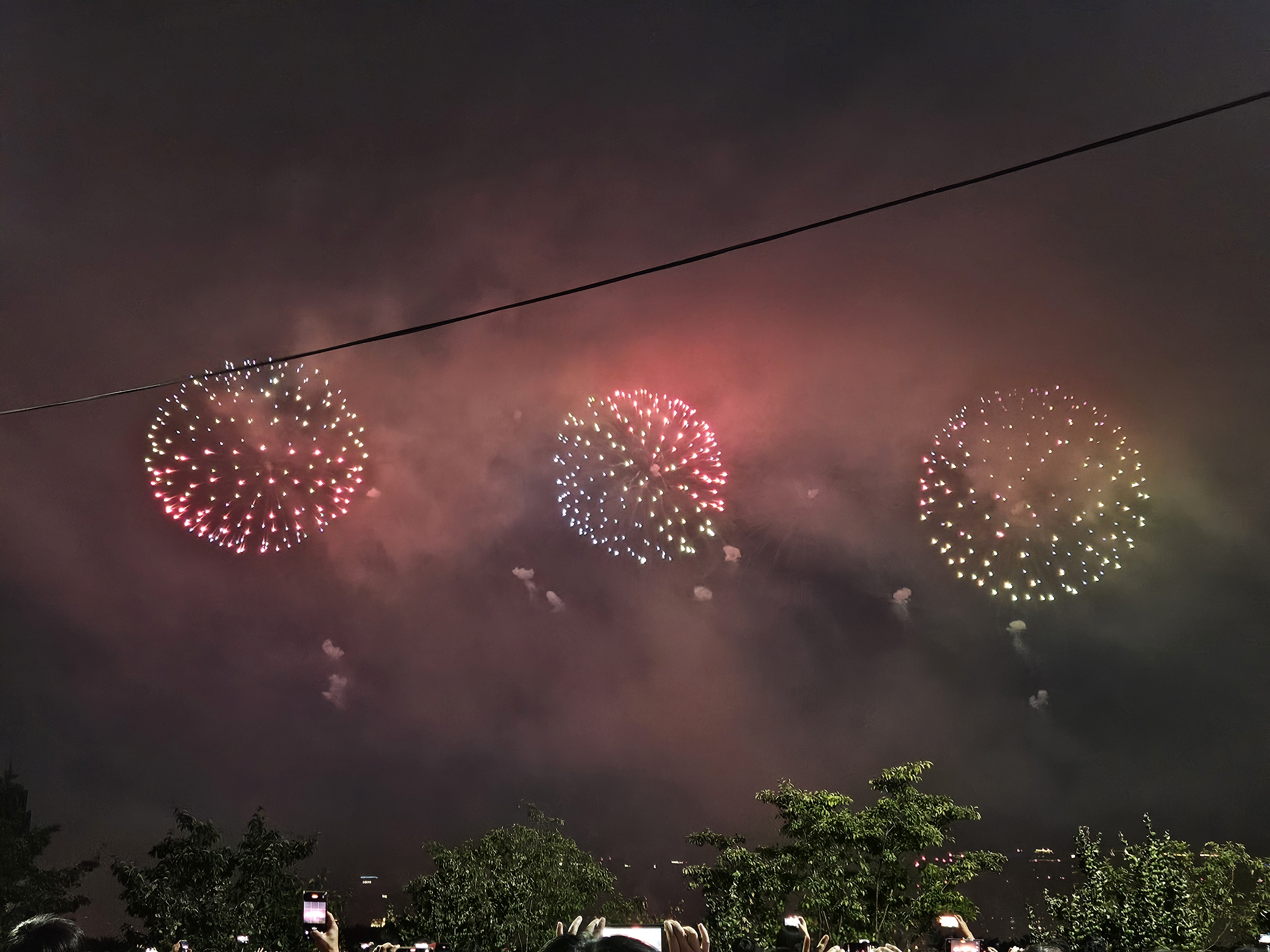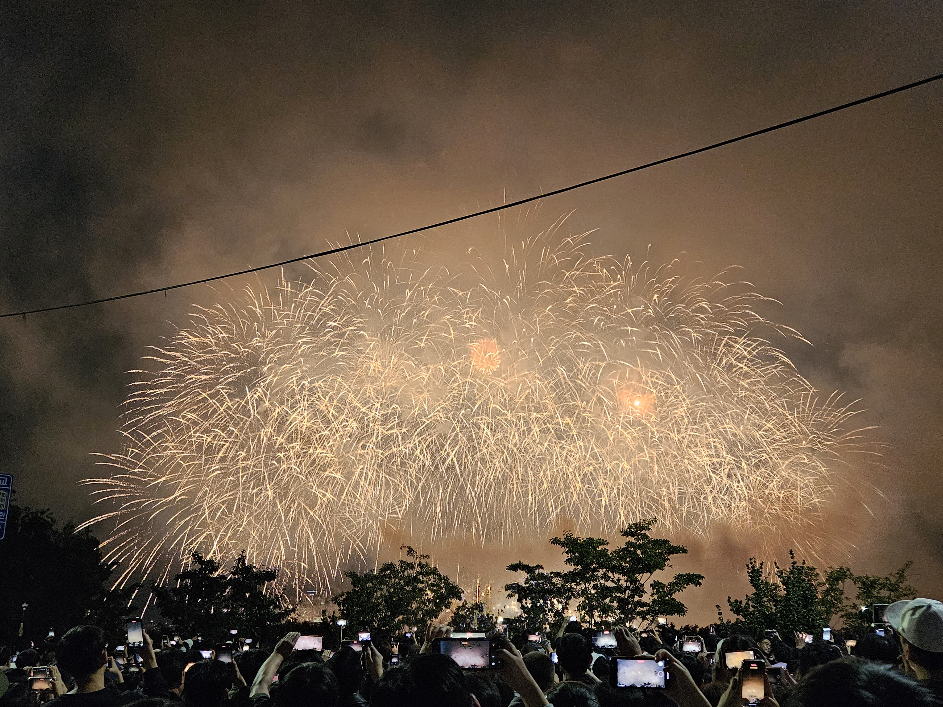 가장 특이했던 점은 원효대교와 한강철교 사이, 원효대교와 마포대교 사이에서 같은 불꽃을 동시에 터뜨리는 '쌍둥이 불꽃'이 터졌습니다.