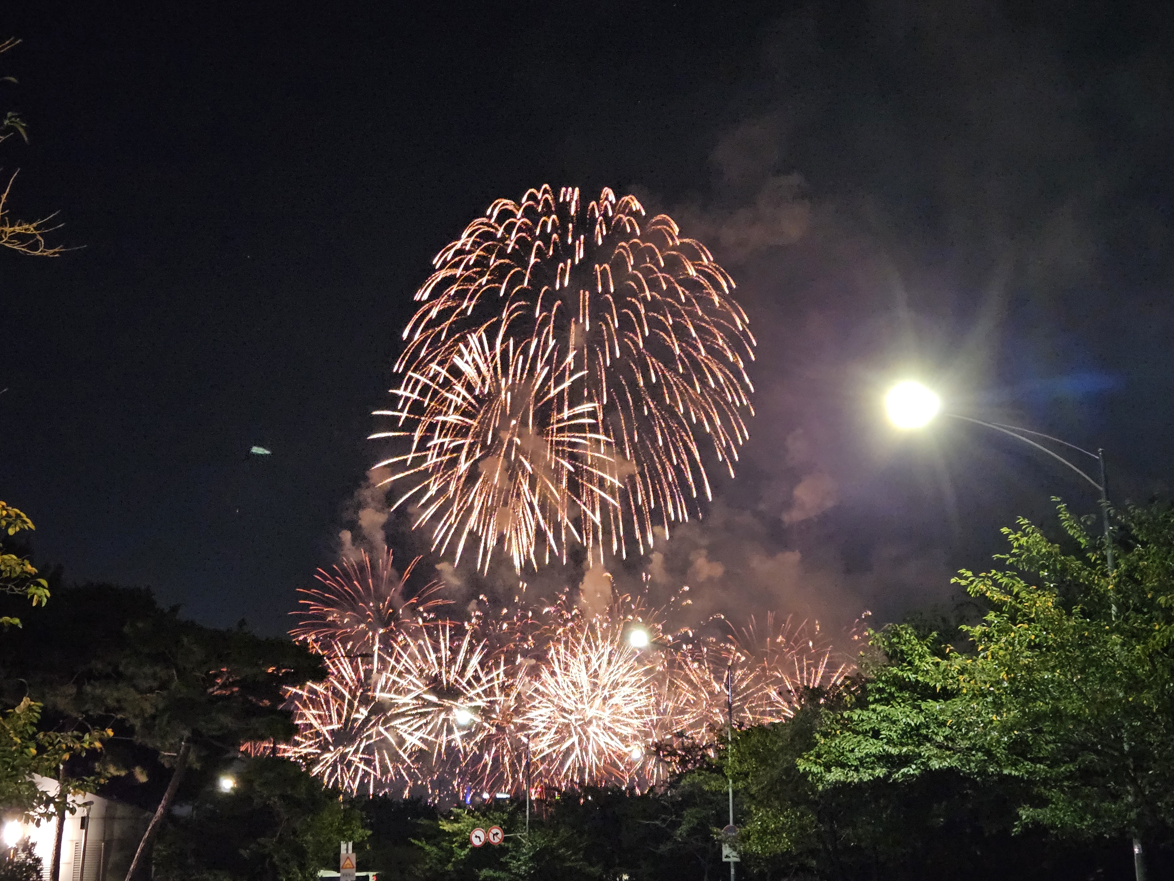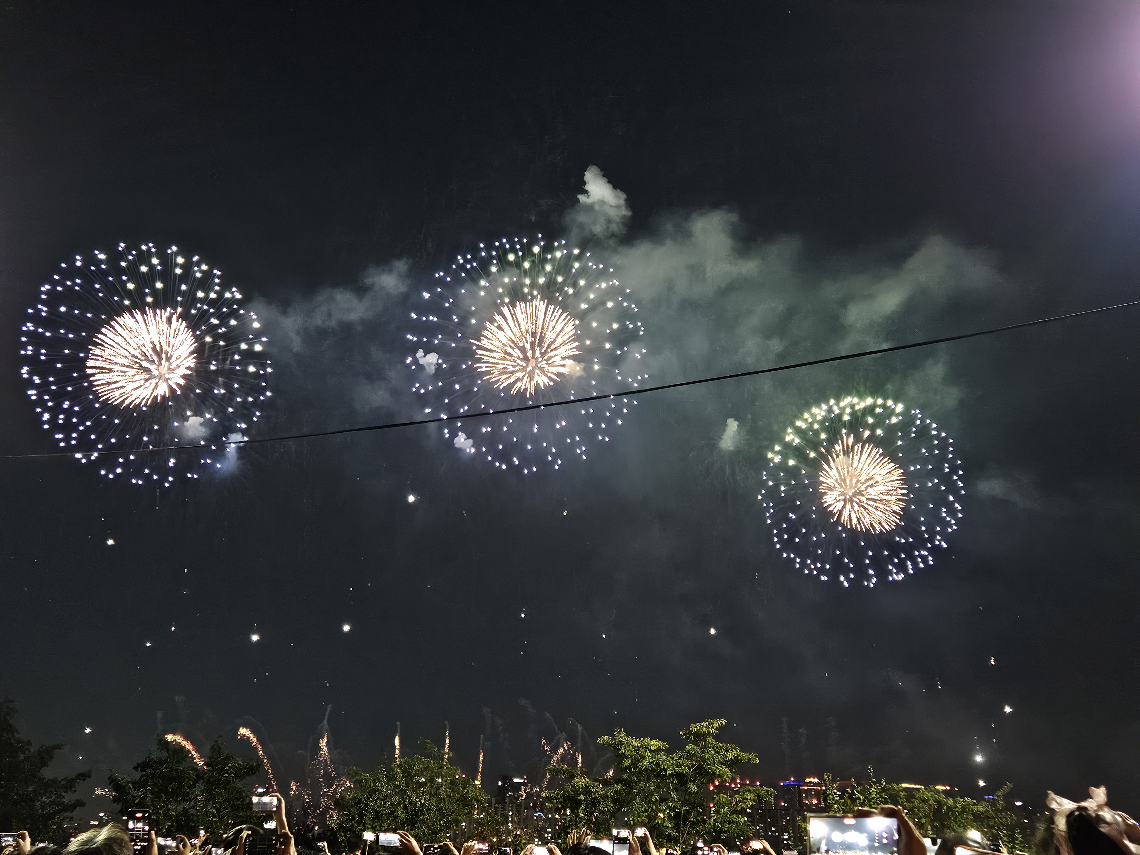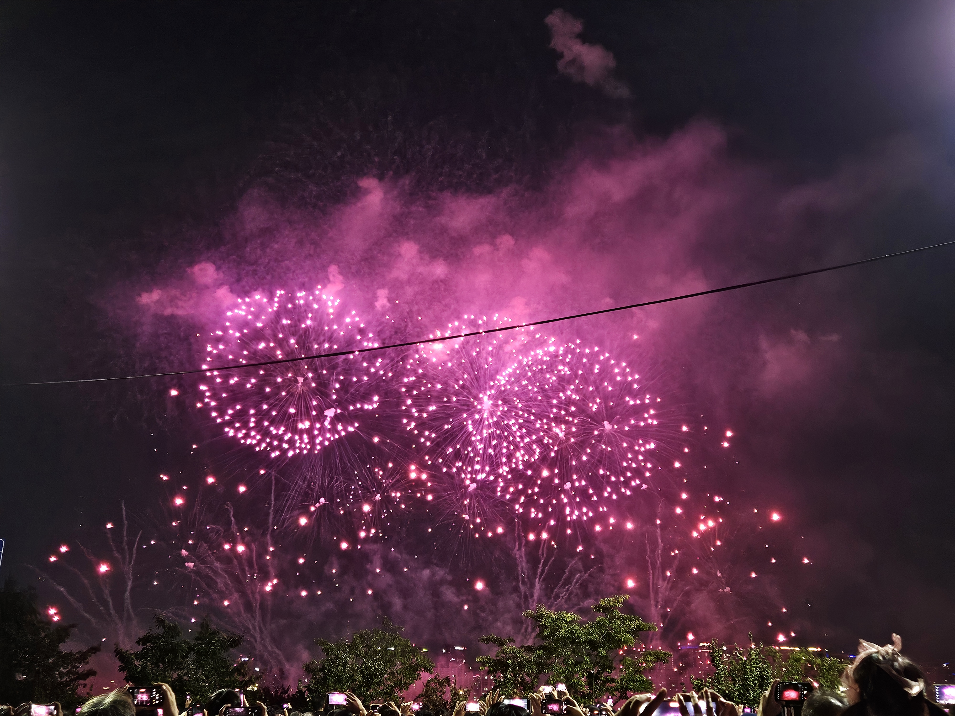 가장 특이했던 점은 원효대교와 한강철교 사이, 원효대교와 마포대교 사이에서 같은 불꽃을 동시에 터뜨리는 '쌍둥이 불꽃'이 터졌습니다.