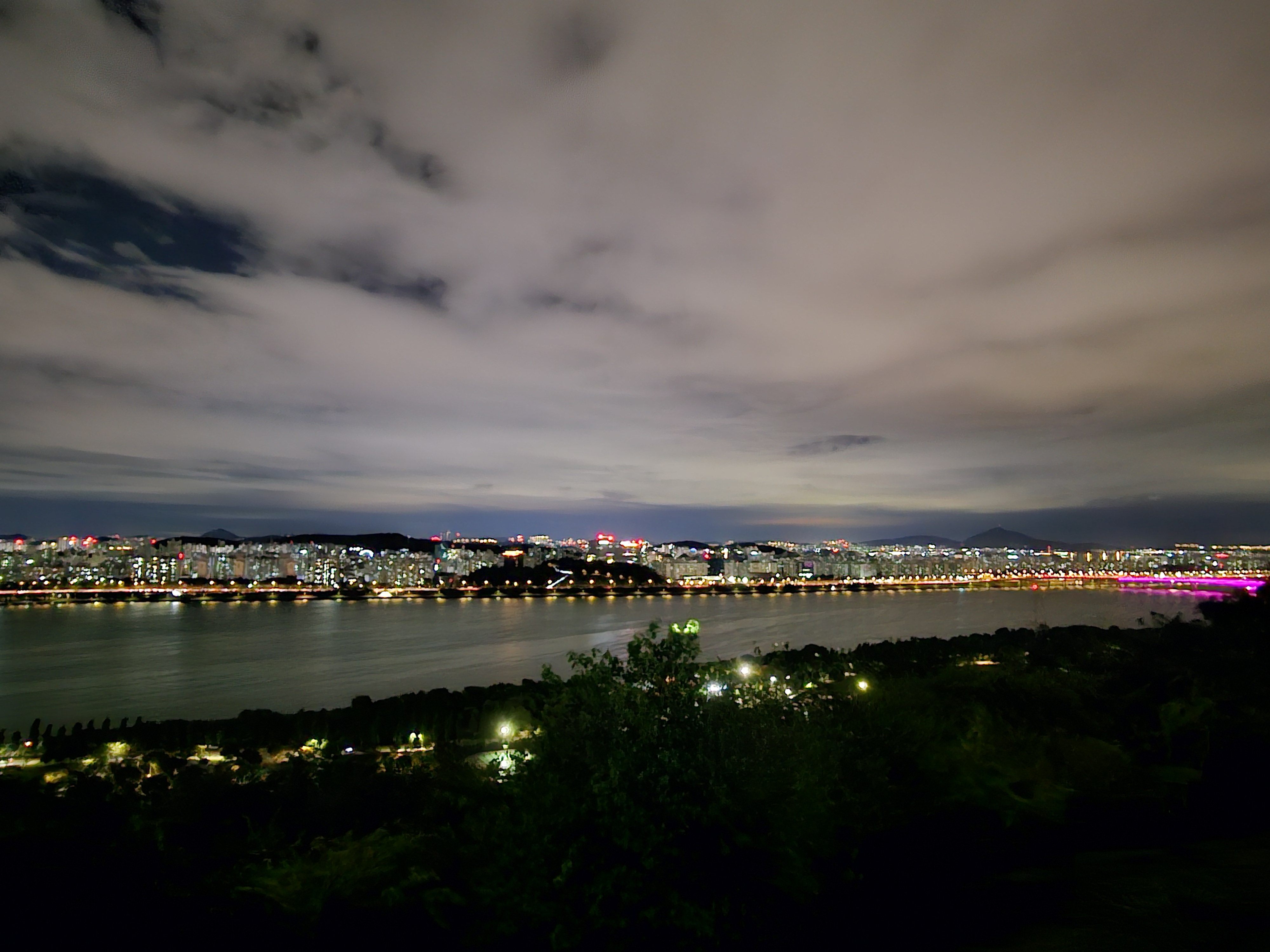 서쪽 한강하류엔 이미 해가 넘어가 석양이 곱게 물들었습니다.