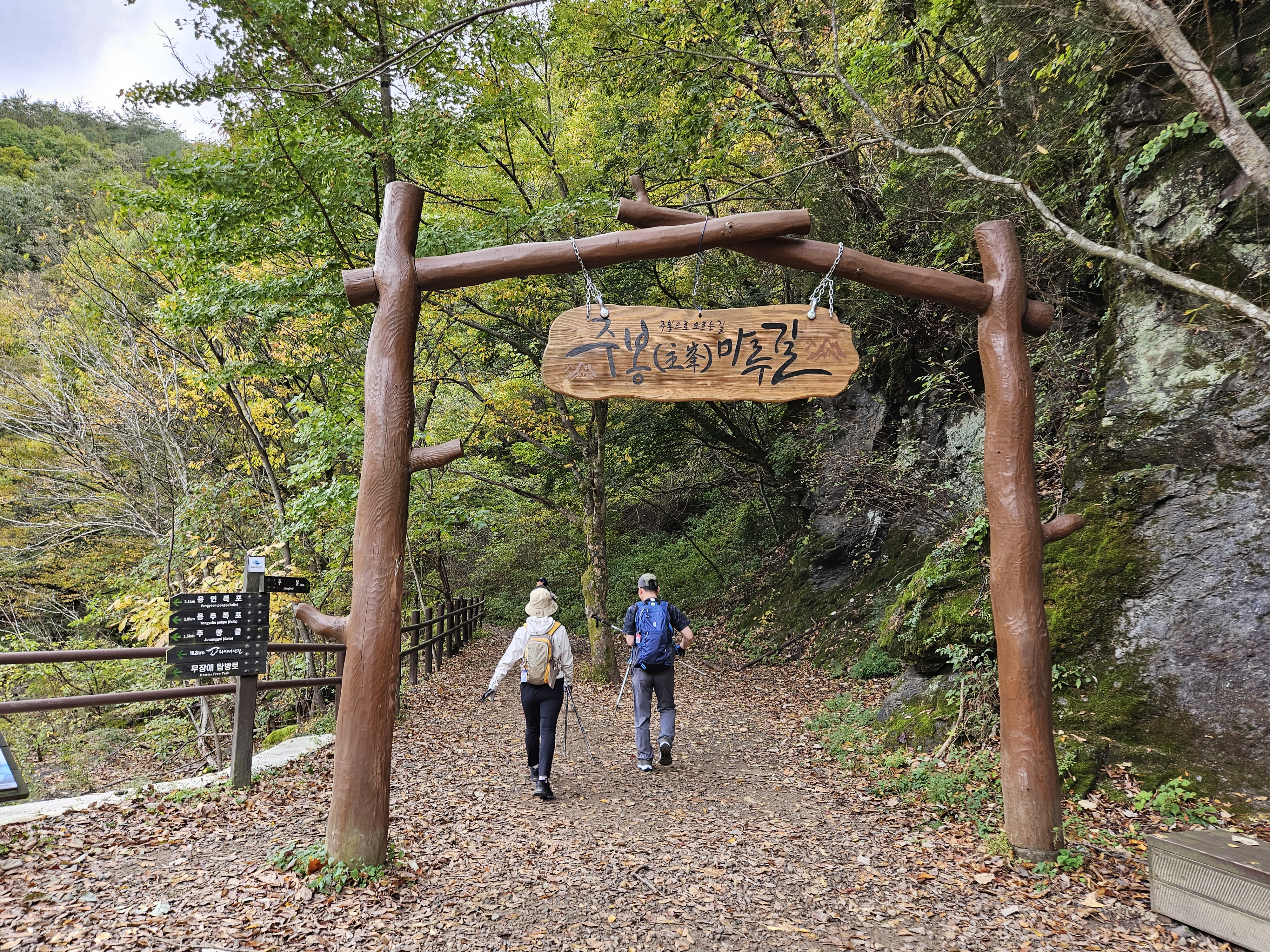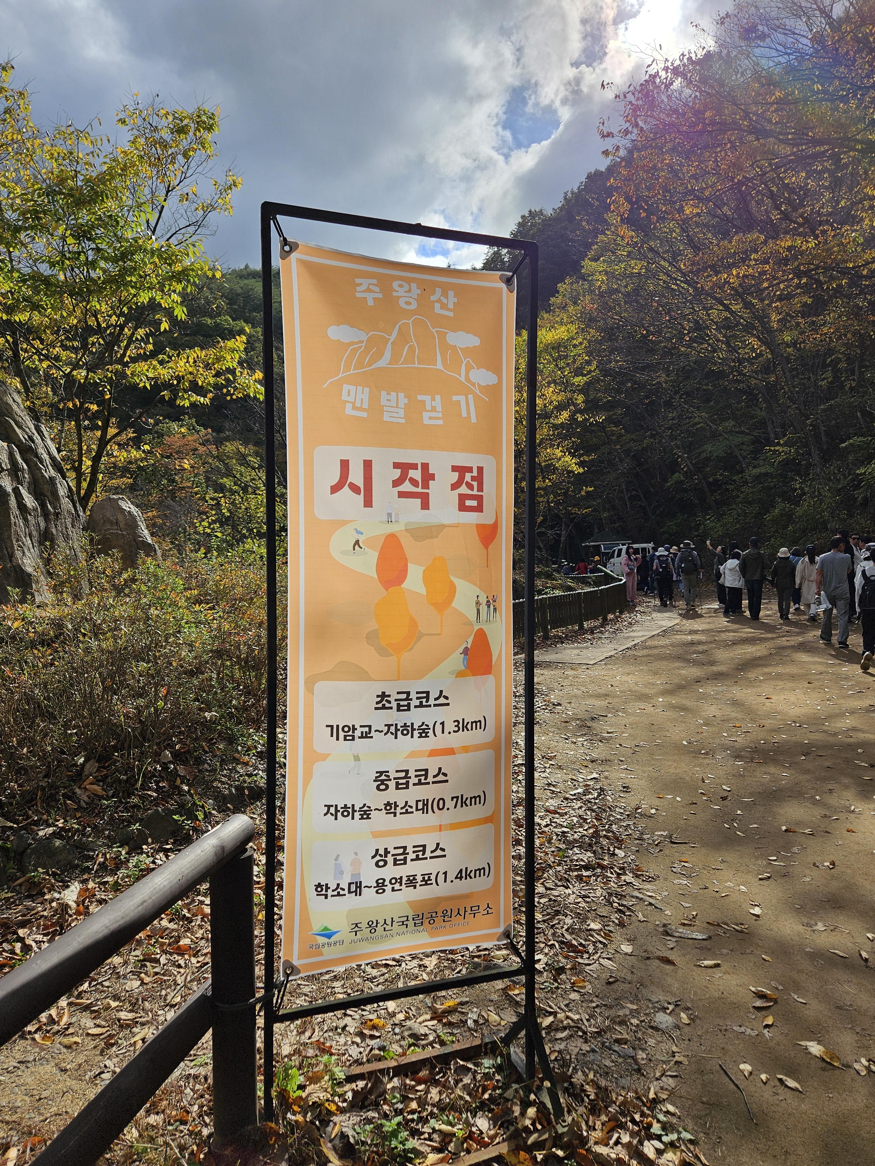주왕계곡 입구에 폭포코스와 주봉코스 갈림길이 나옵니다.
